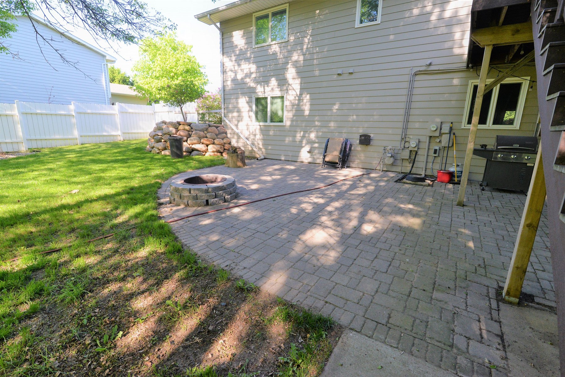 Here's the atmosphere and location you've been looking for! This yard is amazing with beautiful mature trees, privacy fence, hot tub pad, paver patio with firepit and a no maintenance deck. Owners have had over 10k of professional landscaping done. House offers great space, a cozy fireplace and great kitchen storage. And it has geothermal! Consider the energy savings with this efficient system. You'll love this homey, welcoming neighborhood!