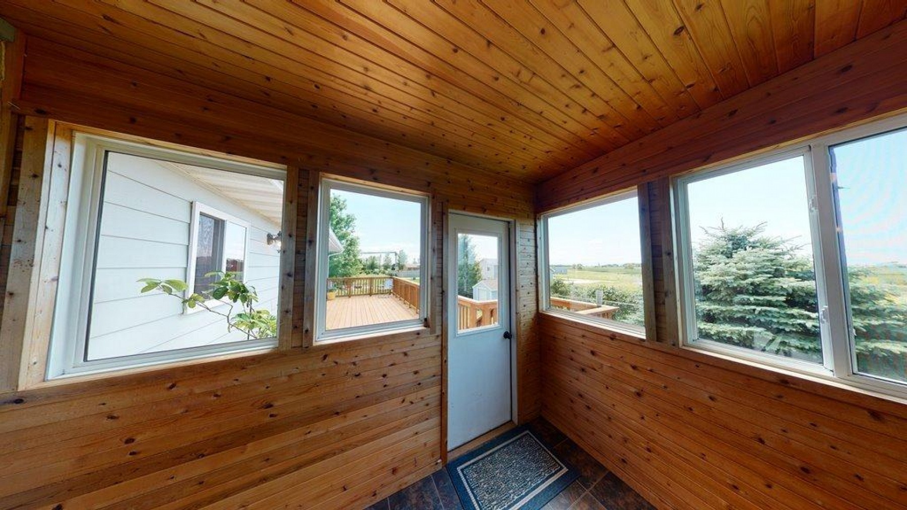 TUCKED AWAY...you will find this attractive, reserved home. Sitting at the end of a dead end street, with very little traffic and currently no neighbors to the side and back of it. You will enjoy the large, inviting entry, and as you walk upstairs to the Living Room, take in all the natural light from the North & East picture window. Take a morning coffee break in the 4 season room with heated floors. Or just steps away, is the freshly stained deck, overlooking a field of green. At night, take in a movie in the lower level family room and relax with a cold beverage from the wet bar. This property even has its own well for the sprinkler system and plant & garden watering. Enjoy the fenced in yard, garden shed and heated 2 stall garage. Call Now For A Personal Showing!