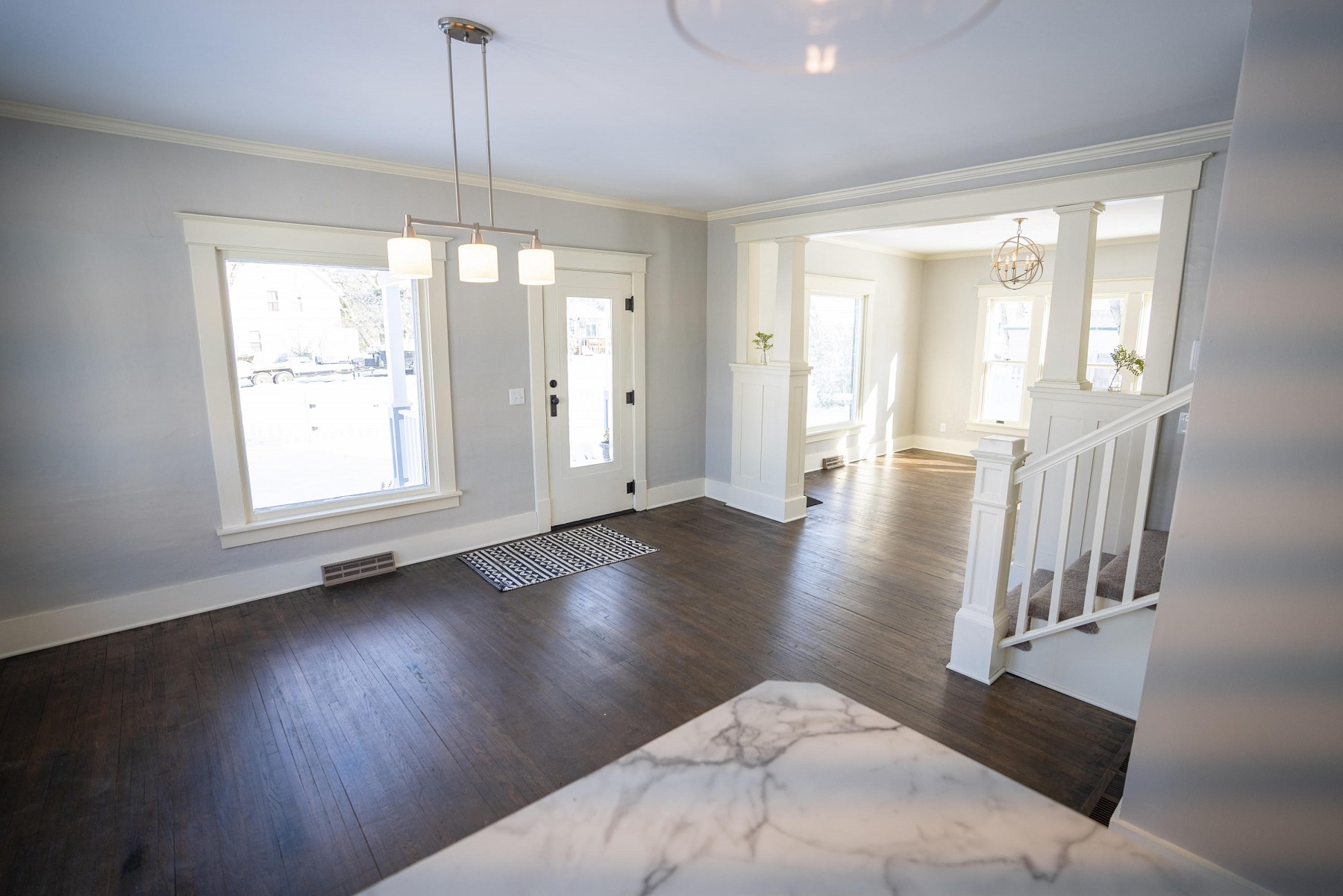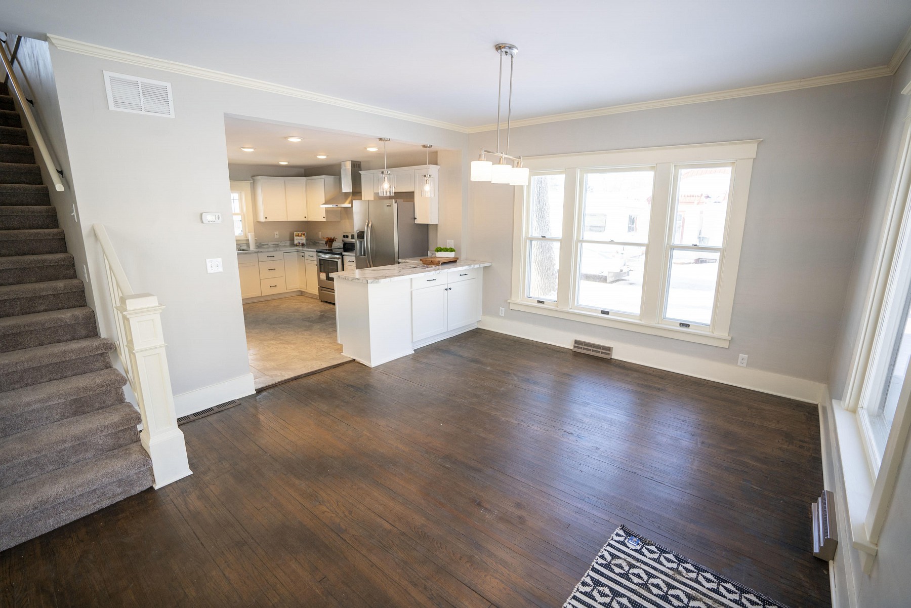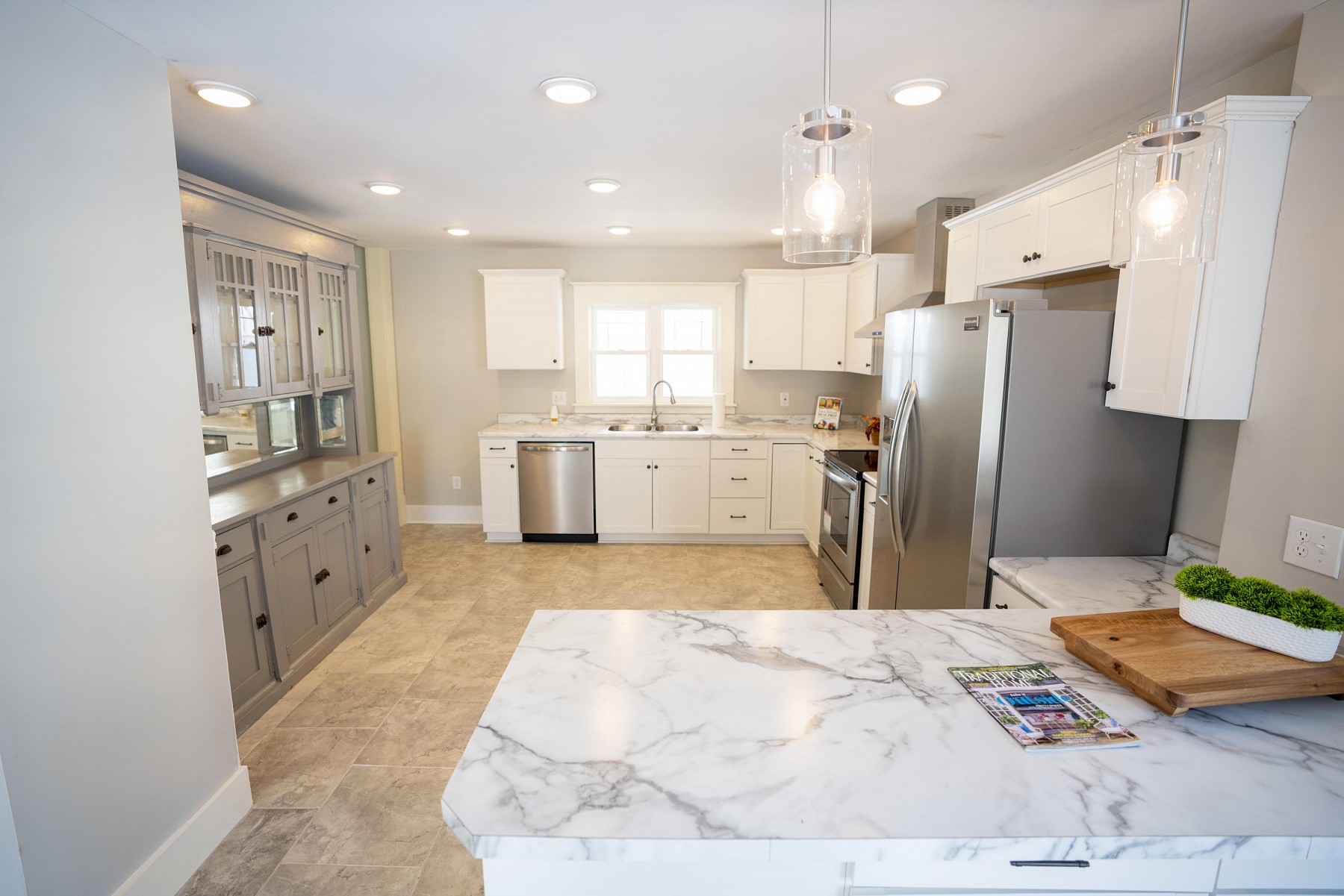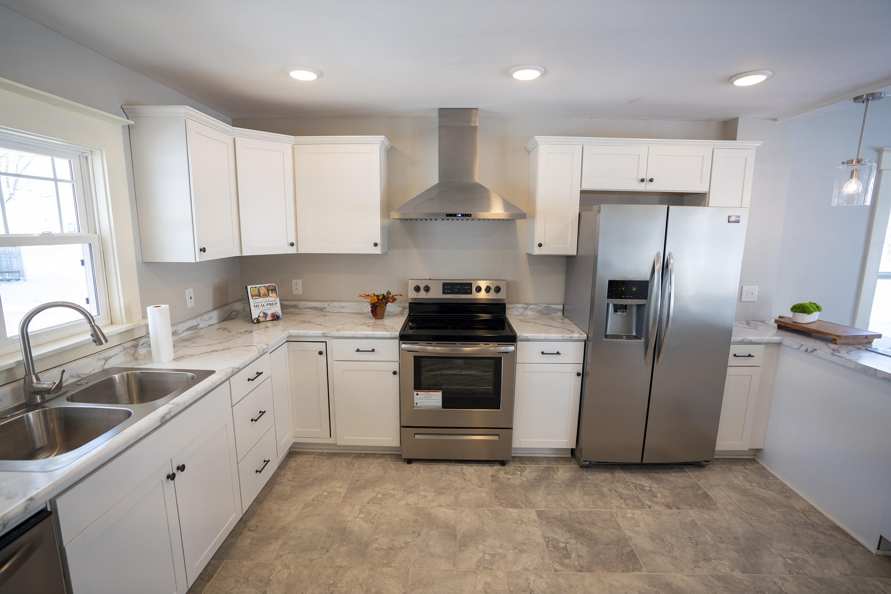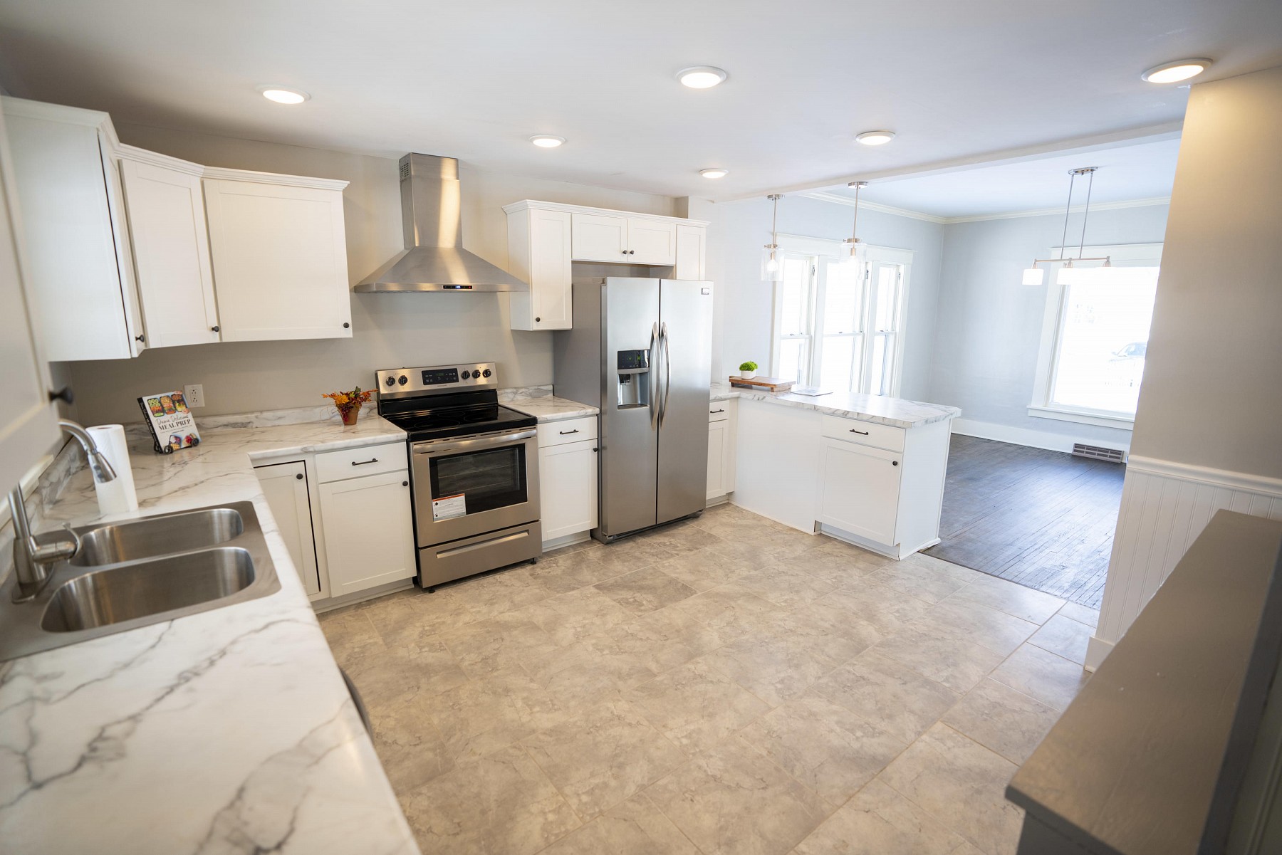 AWESOME! This completely remodeled, 2-story home has everything. It has refinished hard wood floors along with tile in the kitchen and baths. The kitchen has new cabinets, countertops and appliances along with the original built-in cabinet. The huge master bath has a tiled shower and two vanities. The home has new carpet and fresh paint, both inside and out, along with new shingles on the home and garage. The oversized, 3-stall garage has an extra work space and the property has a large, fenced in lot. ALL APPLIANCES INCLUDED!