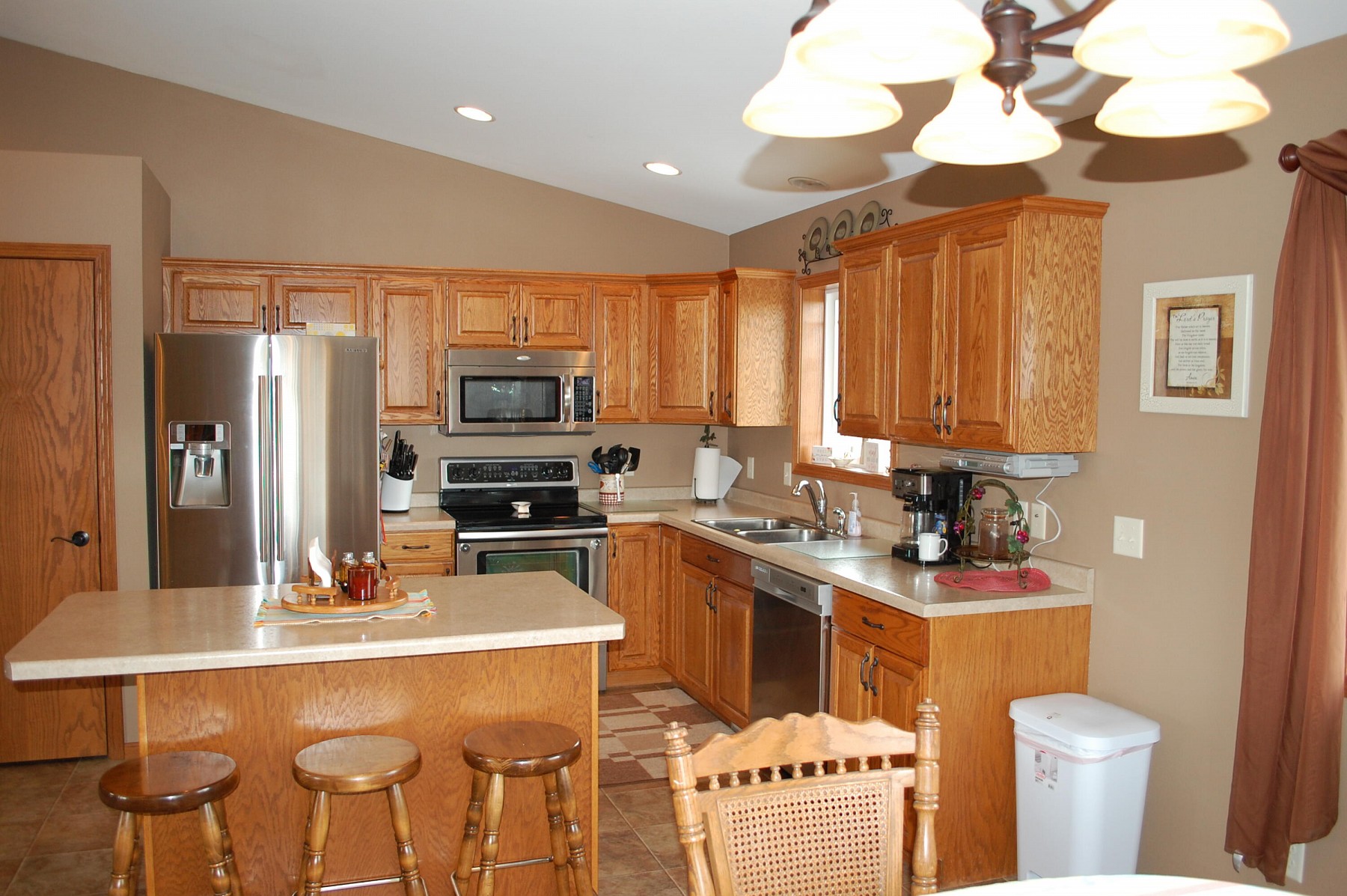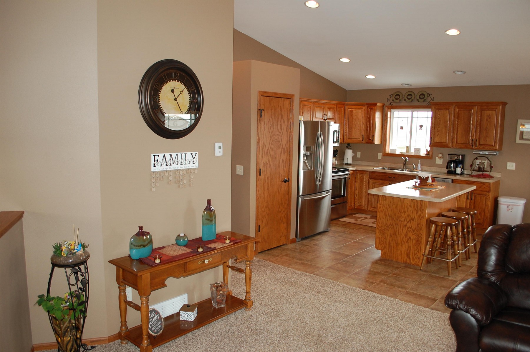 Sprawl out on over 1/2 acre inside the city of Aurora! This beautiful home sits on 2 lots and boasts so many wonderful features. Enter an inviting foyer with soaring ceilings that lead up to a very comfortable living room with fireplace. Move through to the open kitchen with like new stainless appliances, coveted pantry space & sliders to a maintenance free deck! The master bedroom has a huge walk in closet & spacious bathroom with tiled walk in shower. A half bath/ laundry room are also on the main floor. The lower level has newer vinyl plank flooring throughout, gas fireplace and 2 additional garden view bedrooms along with ample storage space. Outside you'll get mature spruce trees, sprinklers, new siding/stone and a newer 2nd garage with covered patio area. It's an awesome home!