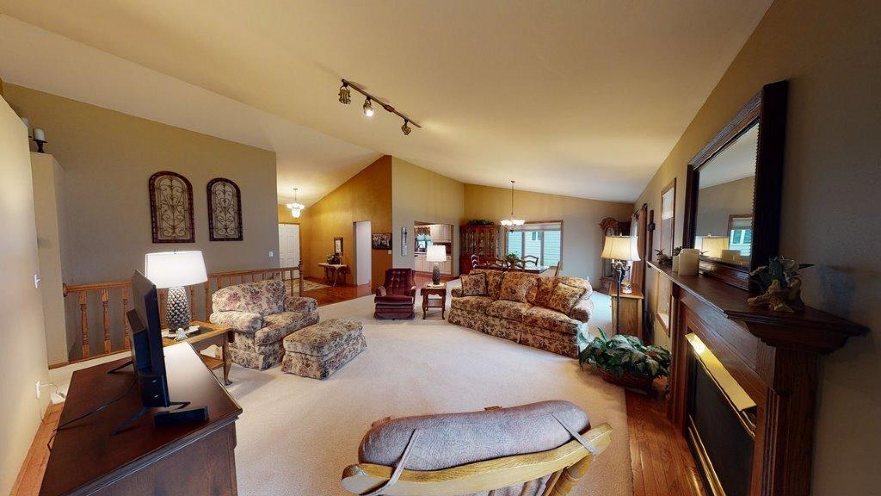 Beautiful ranch style home with 4 bedrooms, 3 bathrooms, main floor laundry and a 3 stall garage with stairs going to the basement. Enjoy the open floor plan with vaulted ceilings and a gas fireplace in the living room as well as a large family room in the lower level with a second gas fireplace. The breakfast nook faces south with bay windows and provides lots of natural light. The home is situated on a large lot along the walking path with mature landscaping, stamped concrete edging, sprinkler system and a private patio.A pre-listing home inspection has been completed on this property. Inspection report available upon request. Call today to view this beautiful home!