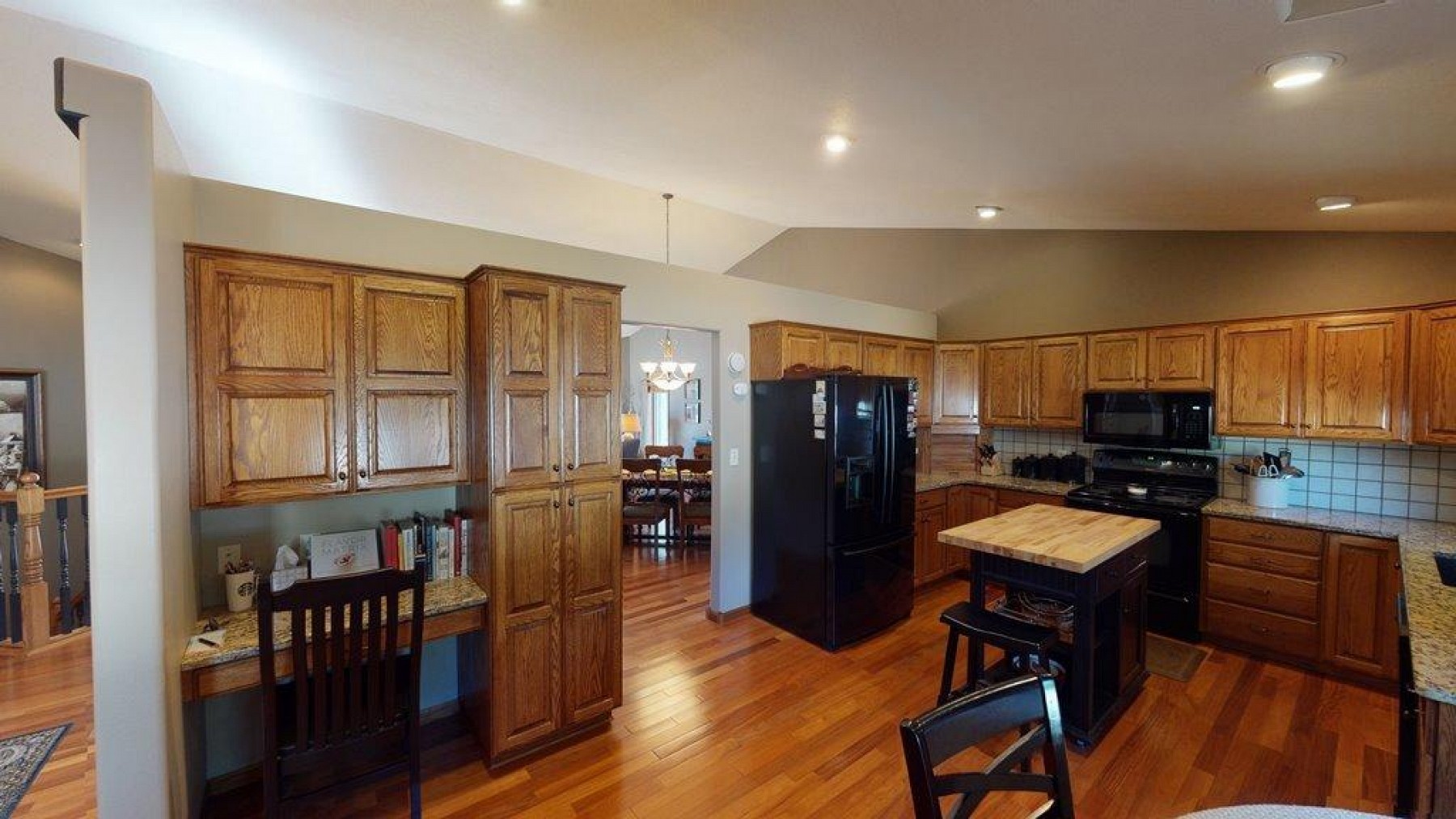 Check out this 4 bedroom, 3 bathroom ranch style home with a lower level walk-out to the Indian Hills walking & bike paths. As you enter the home the hardwood flooring is throughout the large foyer, kitchen, dining room and living room with a toasty gas fireplace in those cold months. The kitchen has a built-in desk, pantry, tiled back splash, granite counter tops, and an informal dining area with a vaulted ceiling. Main Level Laundry is a bonus! This beautiful home features a capacious master bedroom suite with walk-in closet, tiled master bath with double sinks, jetted tub and separate shower. Great entertaining space on the deck and huge patio. A pre-listing home inspection has been completed on this property. Inspection report available upon request. Call today for a private showing!