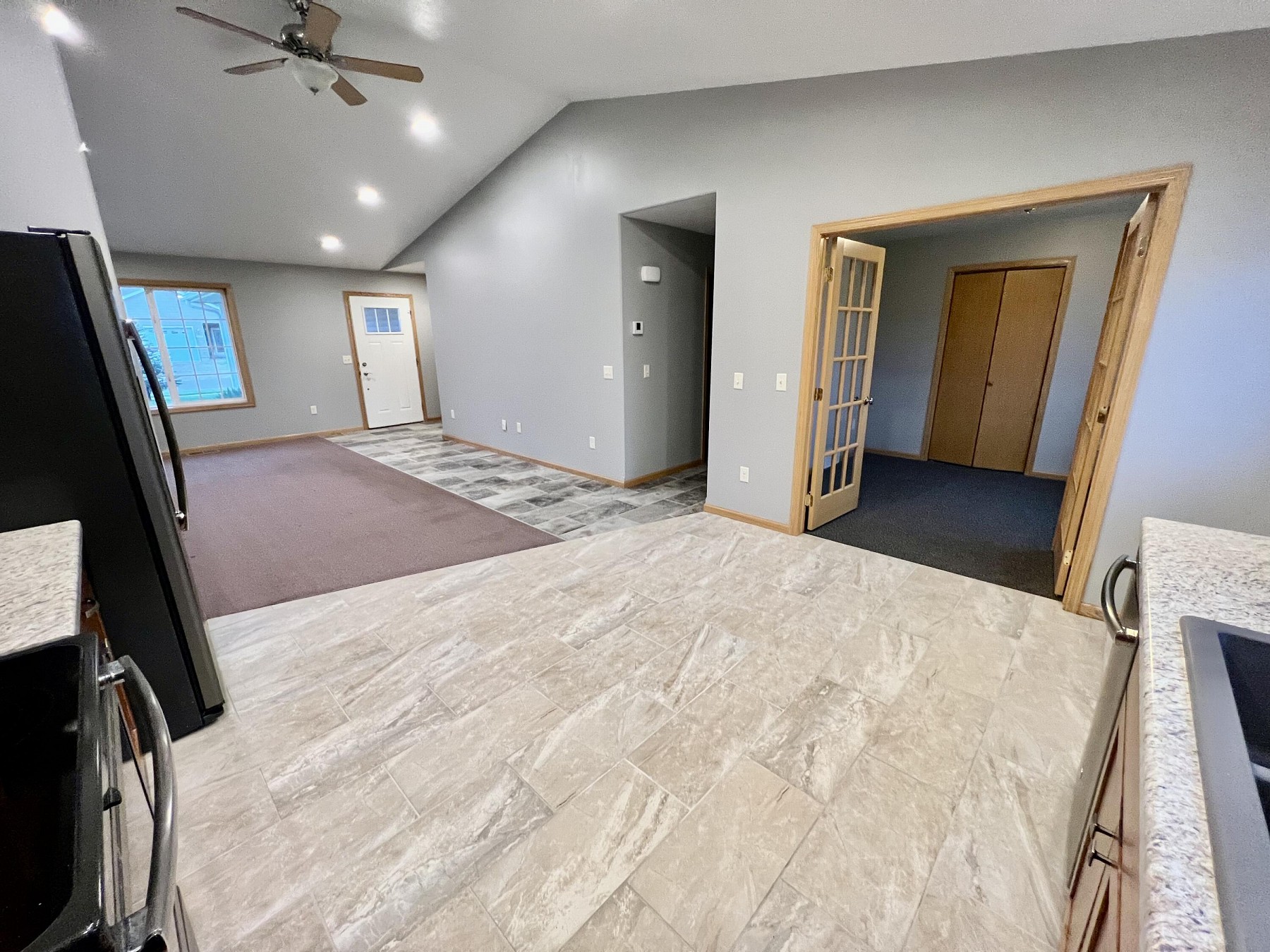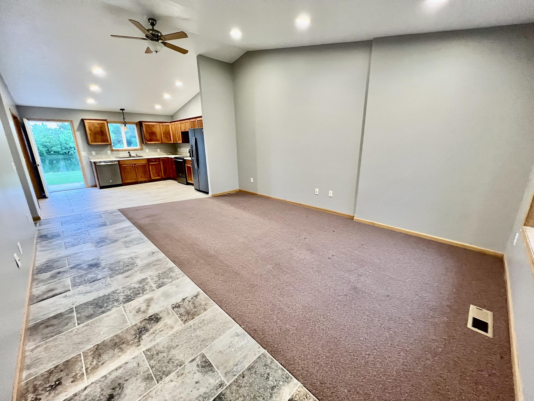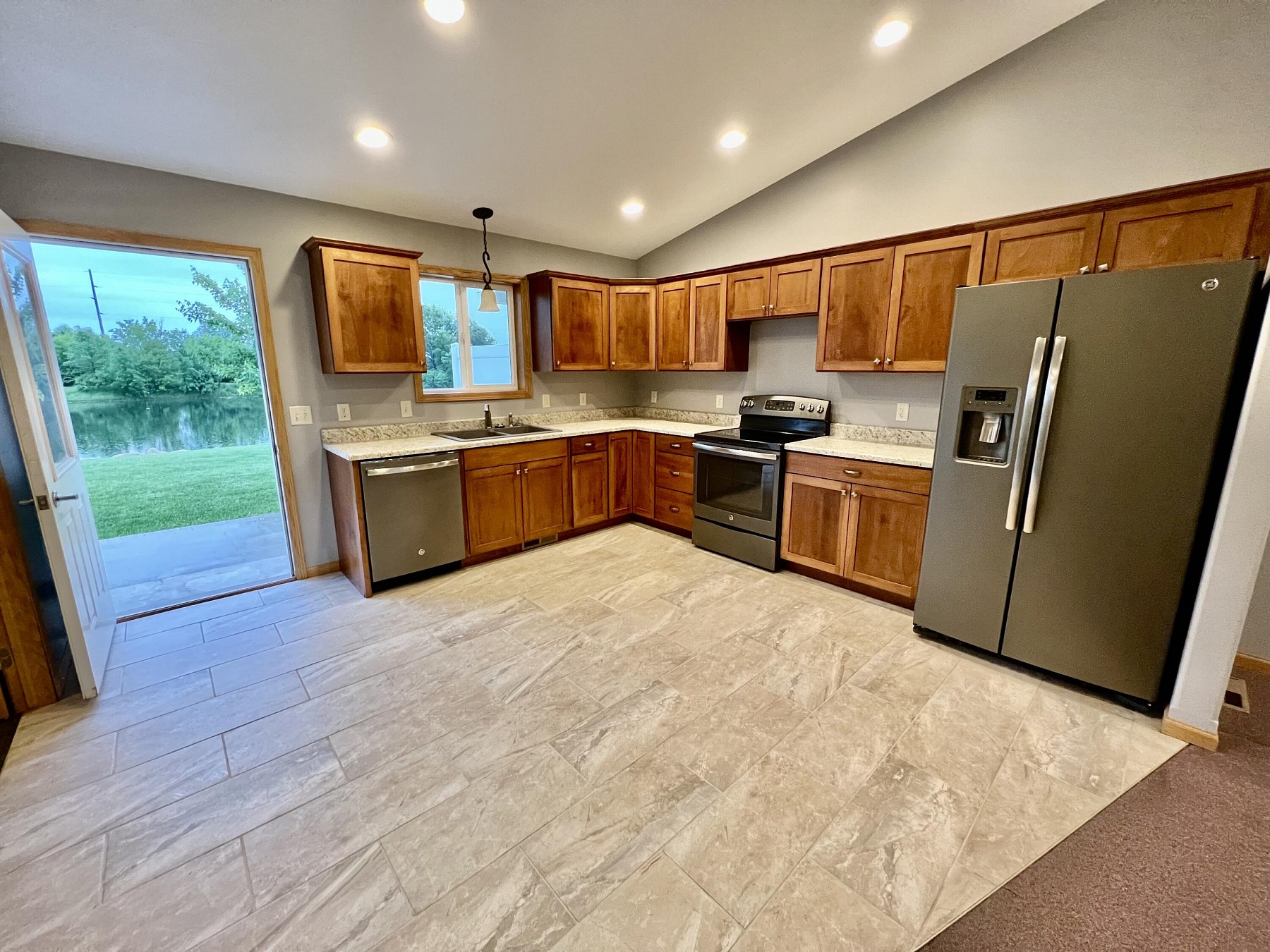 These townhomes are always a hit! The perfect one level homes with 2 bedrooms, 1 flex room, 2 bathrooms, vault ceilings, large kitchen and finished garage. And this unit has a stunning private lake view. Convenient location and a great price.