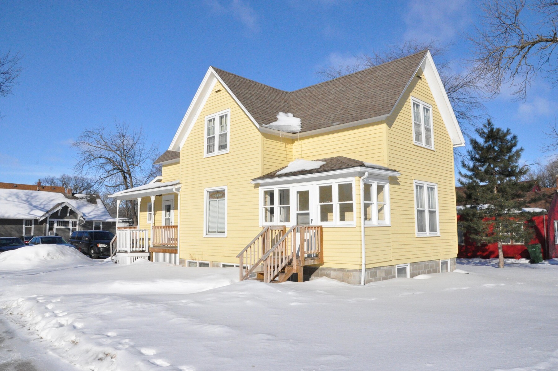 This is a great investment opportunity to buy two properties a block from SDSU campus. This one is next door to 919 7th St, which priced at $149,900. The seller will sell both of these two properties together or separately. This property is licensed duplex, and currently is rented for $2100.00 per month until 5/29/23. Tenants pay all utilities with landlord responsible for lawncare and snow removal. It also has a signed lease for 2023/2024 for $2250.00 per month. For this lease tenants pay for all utilities and are responsible for snow removal, and landlord has lawncare. Please make any offers contingent upon viewing the leases. Current owner has re-modeled the kitchen on the main level (2022), painted the exterior (2019) and had Austriems landscape it (2020).