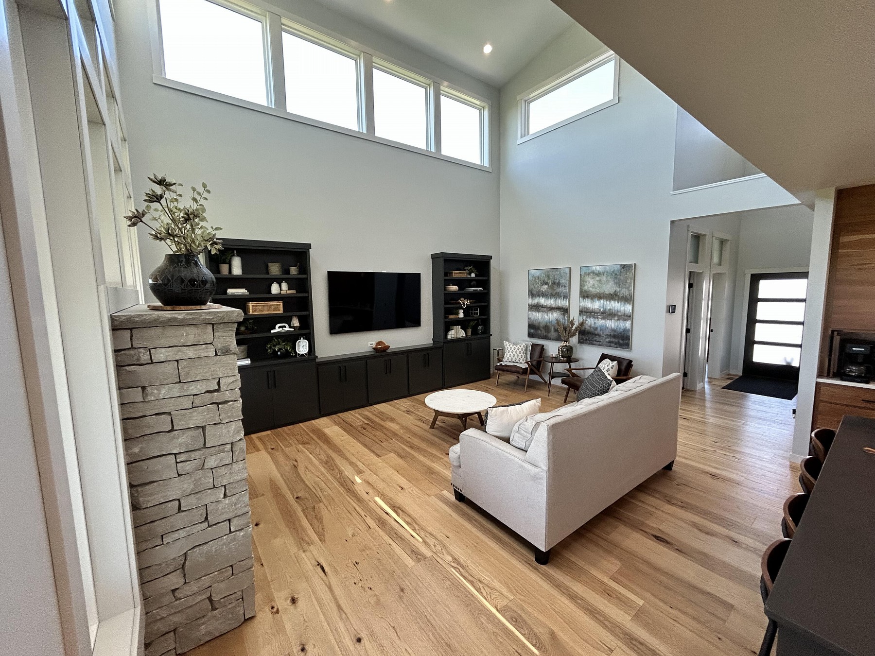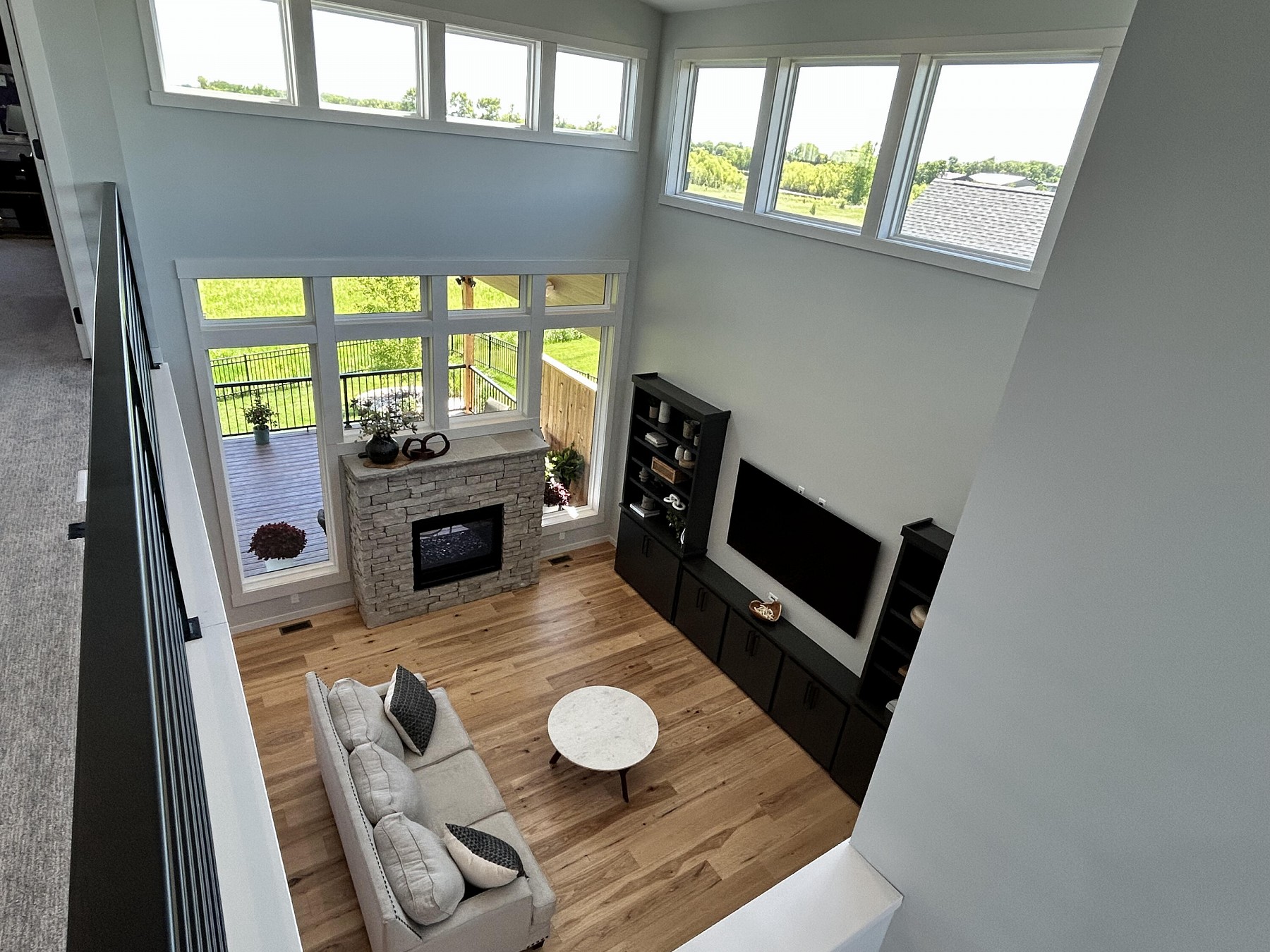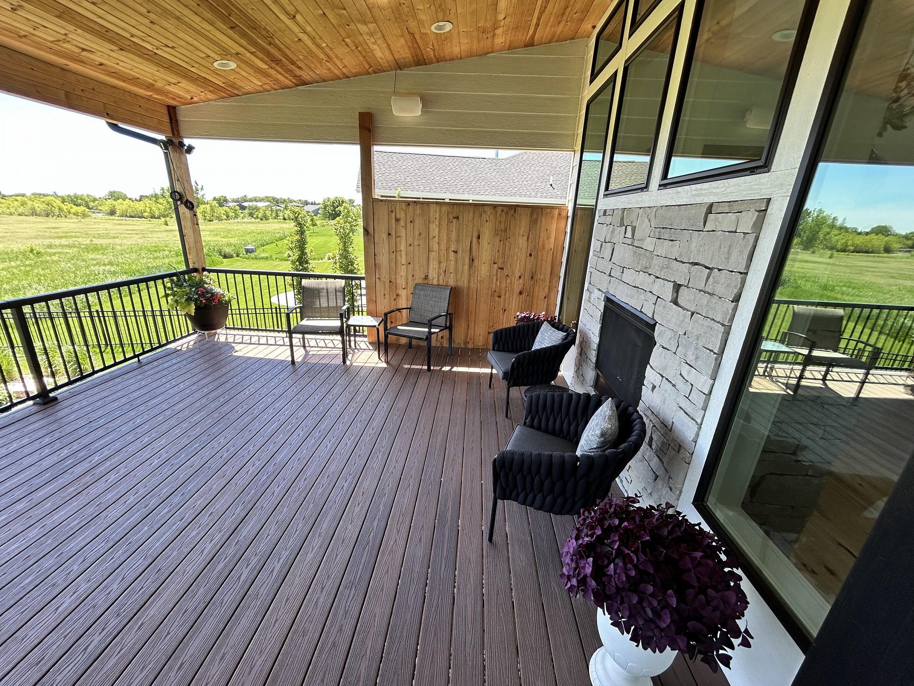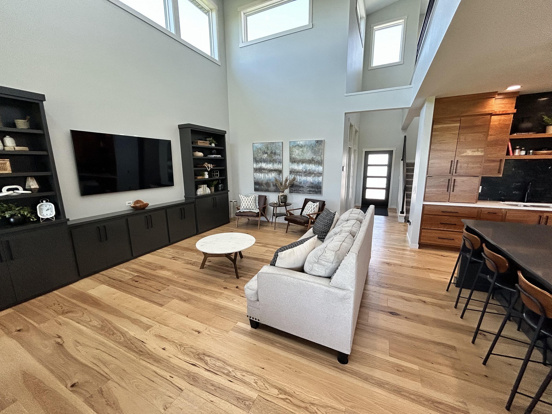 This spacious, single-family home features modern amenities and architectural character in a highly sought after location. You will love the abundance of natural light and views provided by the generous windows throughout the home. Entertaining guests and family will be a breeze with the open concept floor plan that features an expansive kitchen and dining space with direct access to the covered deck. The double sided fireplace will also offer warmth when spending late nights on the covered deck while enjoying the backyard views. You will also appreciate the sleek and modern custom bar that provides additional space for entertaining. For added convenience and accessibility, the laundry room, office, and master bedroom are located on the main level of this perfectly designed home