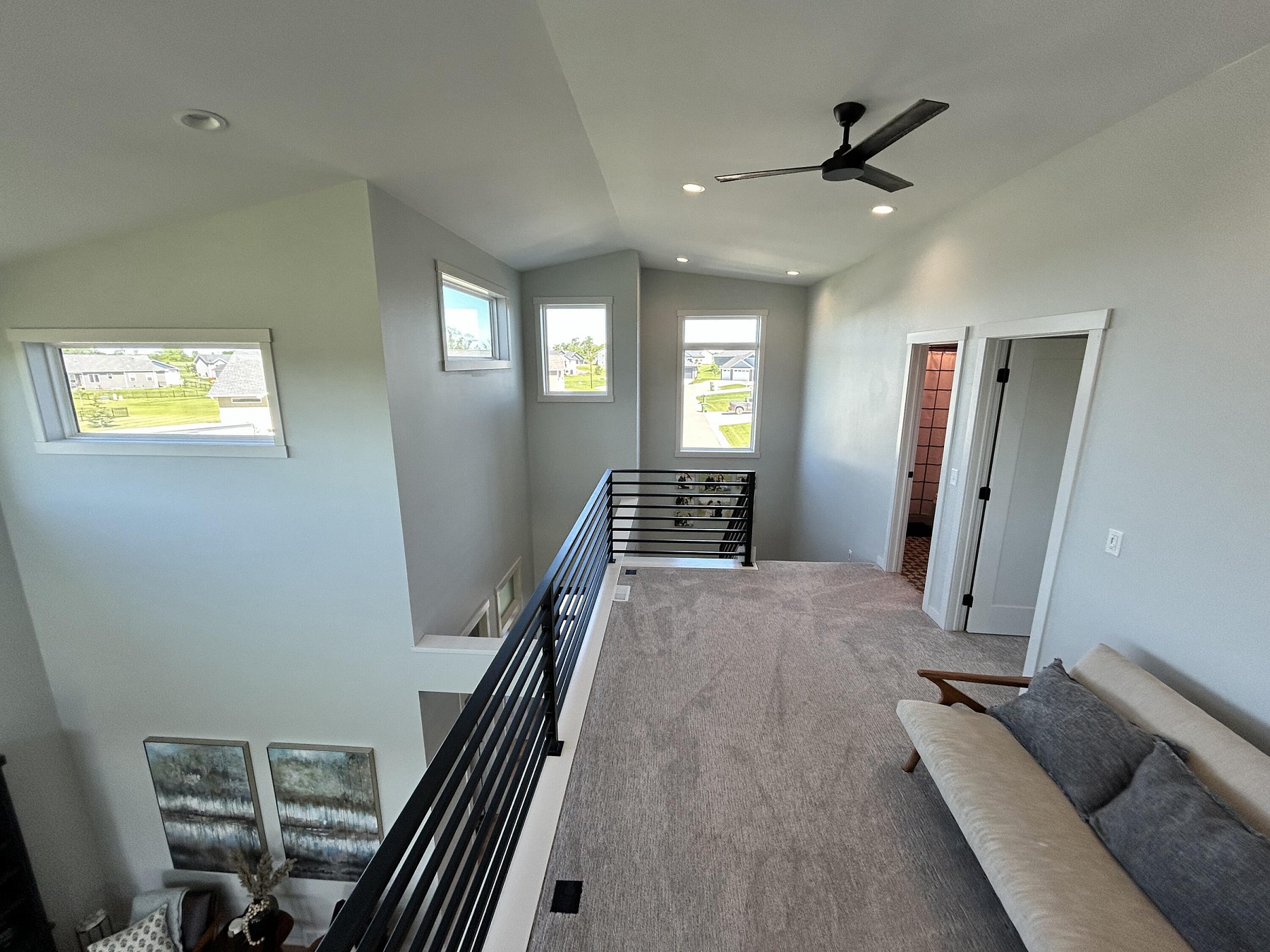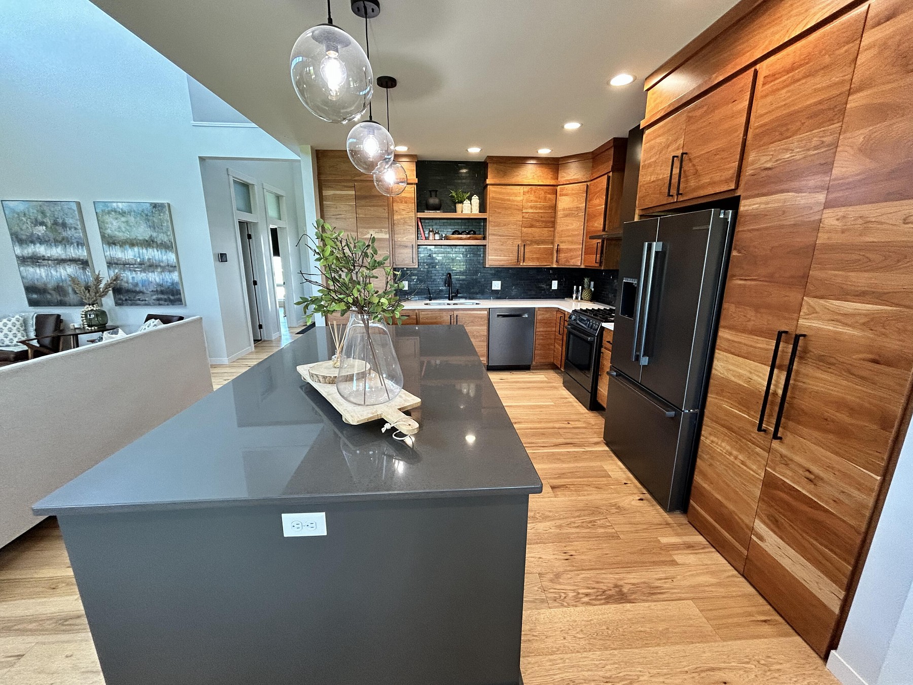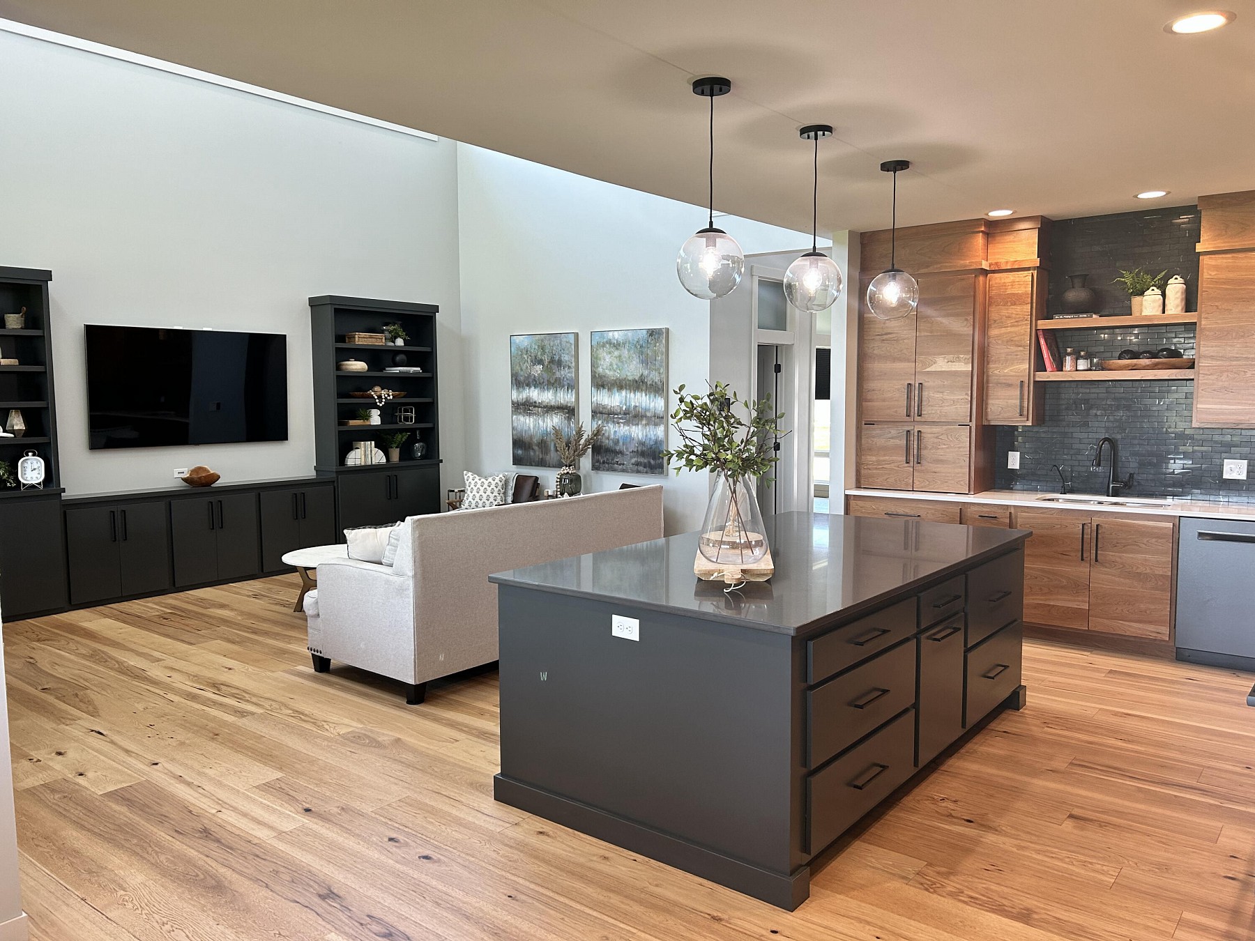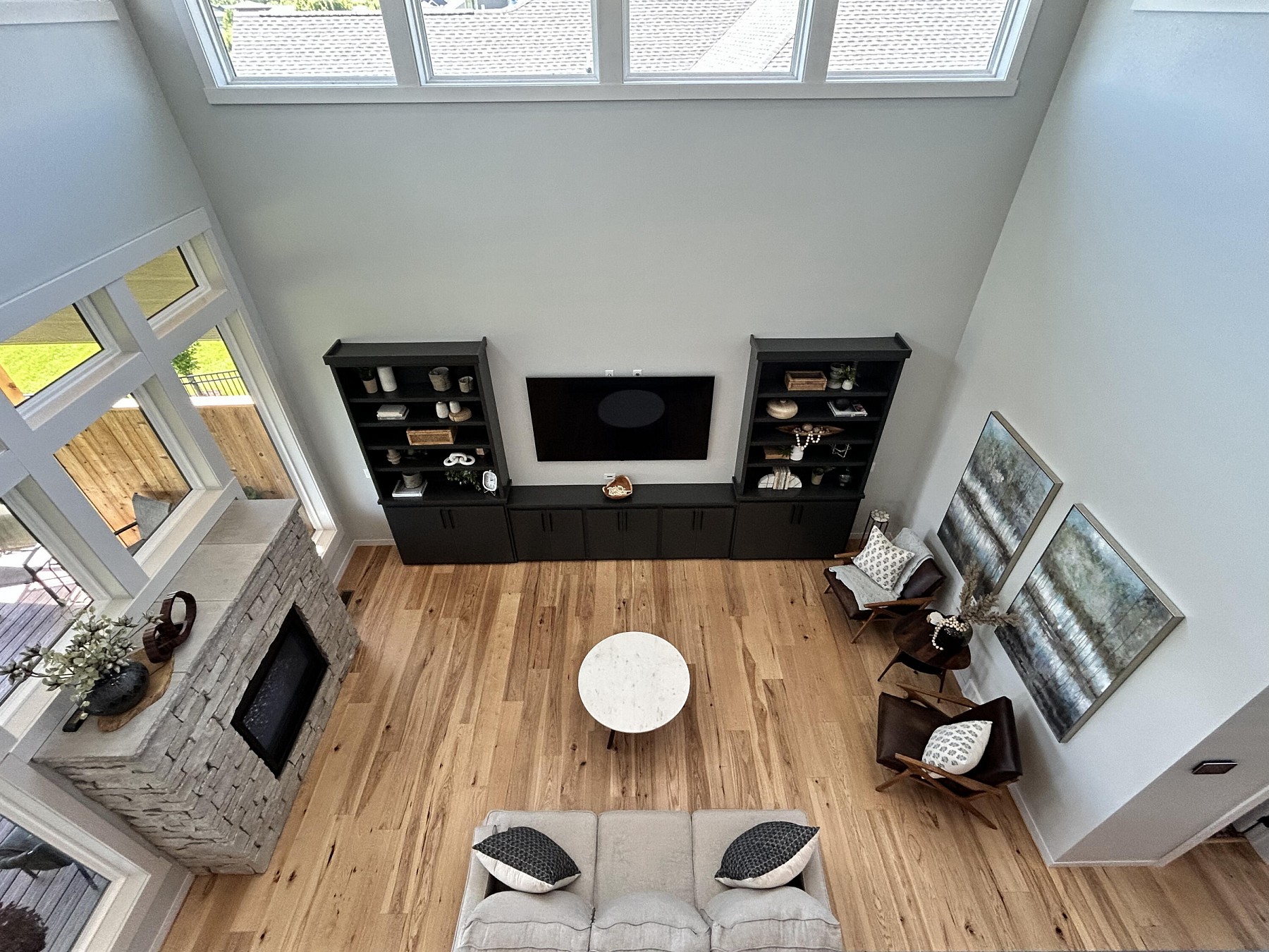 This spacious, single-family home features modern amenities and architectural character in a highly sought after location. You will love the abundance of natural light and views provided by the generous windows throughout the home. Entertaining guests and family will be a breeze with the open concept floor plan that features an expansive kitchen and dining space with direct access to the covered deck. The double sided fireplace will also offer warmth when spending late nights on the covered deck while enjoying the backyard views. You will also appreciate the sleek and modern custom bar that provides additional space for entertaining. For added convenience and accessibility, the laundry room, office, and master bedroom are located on the main level of this perfectly designed home