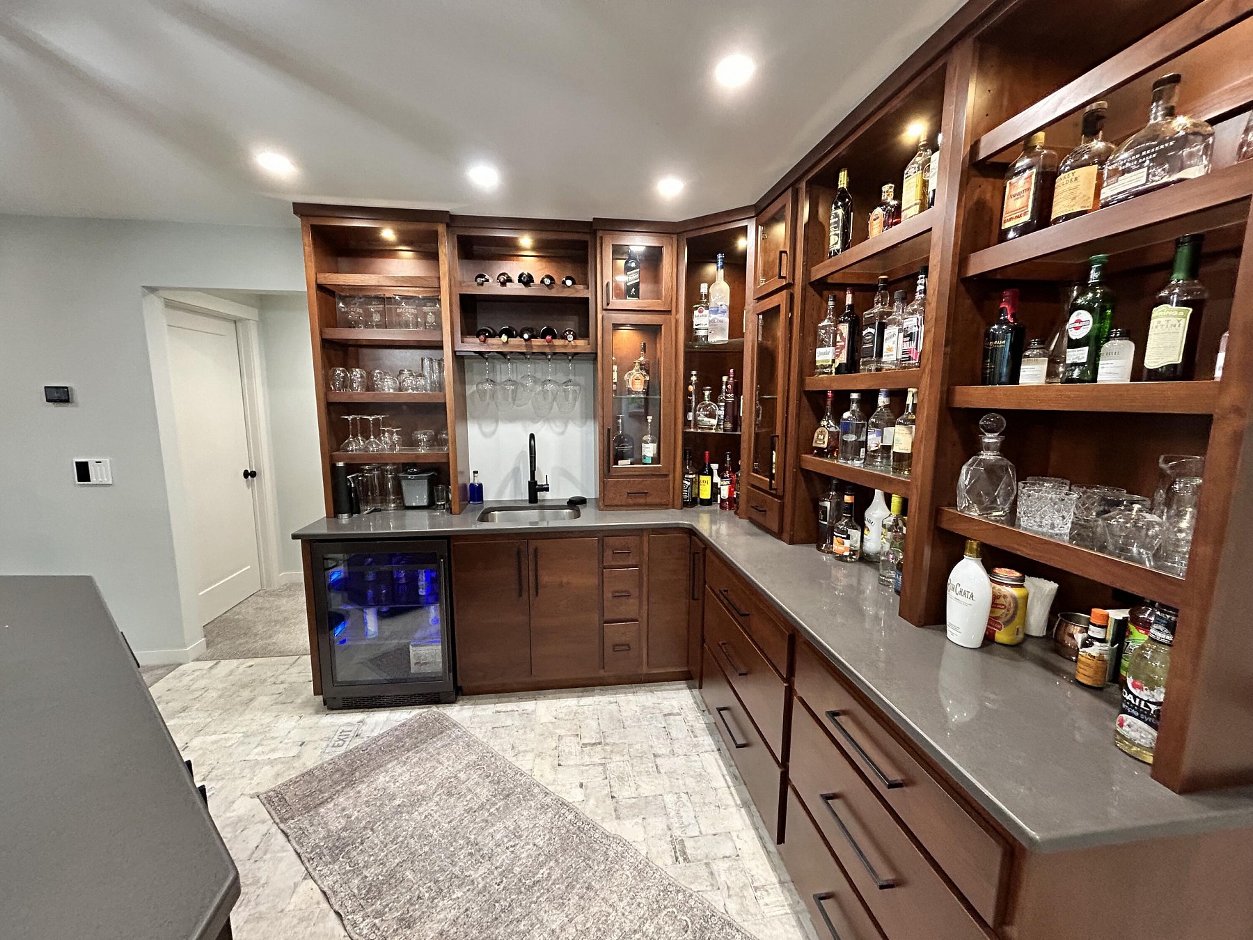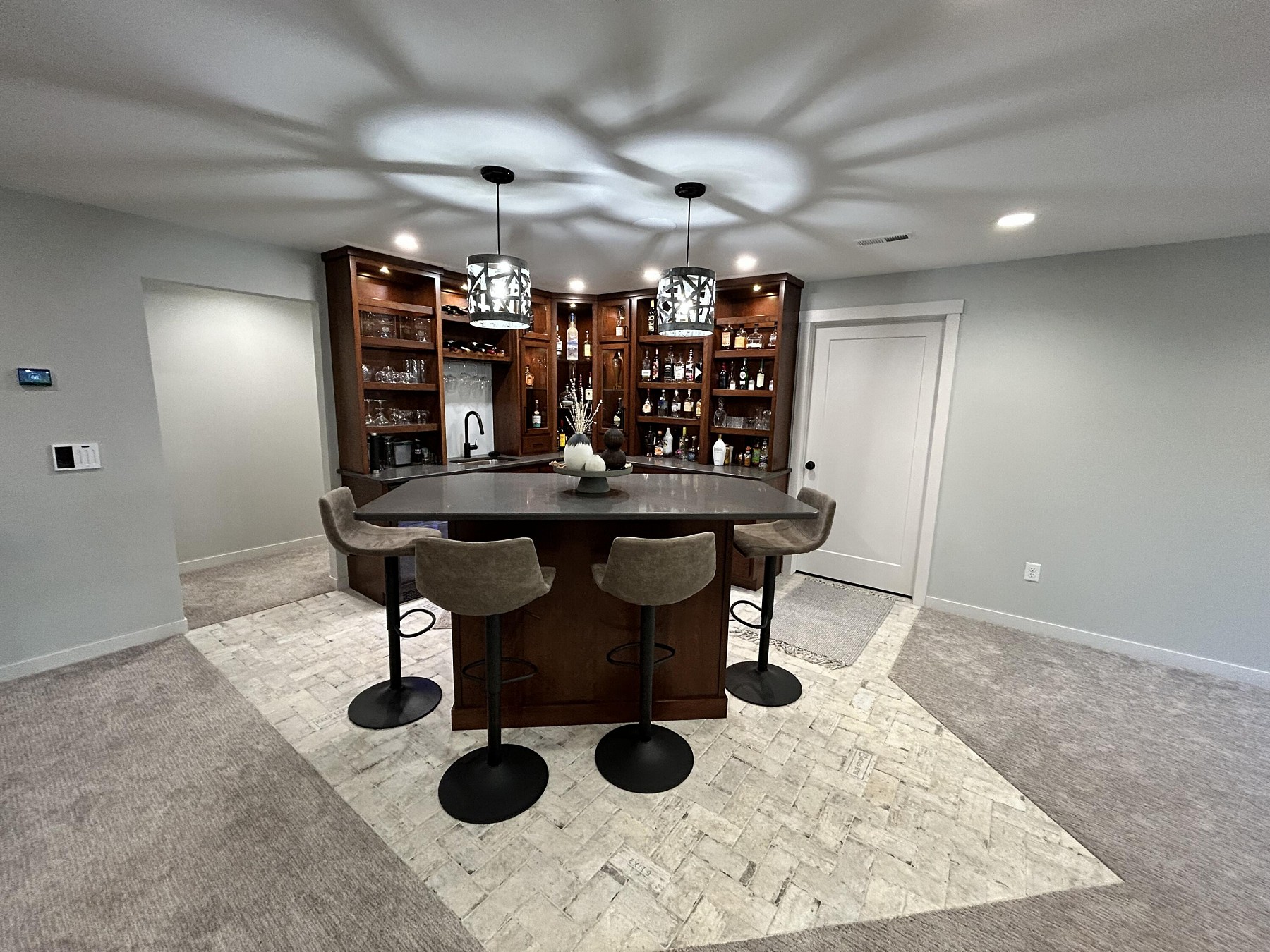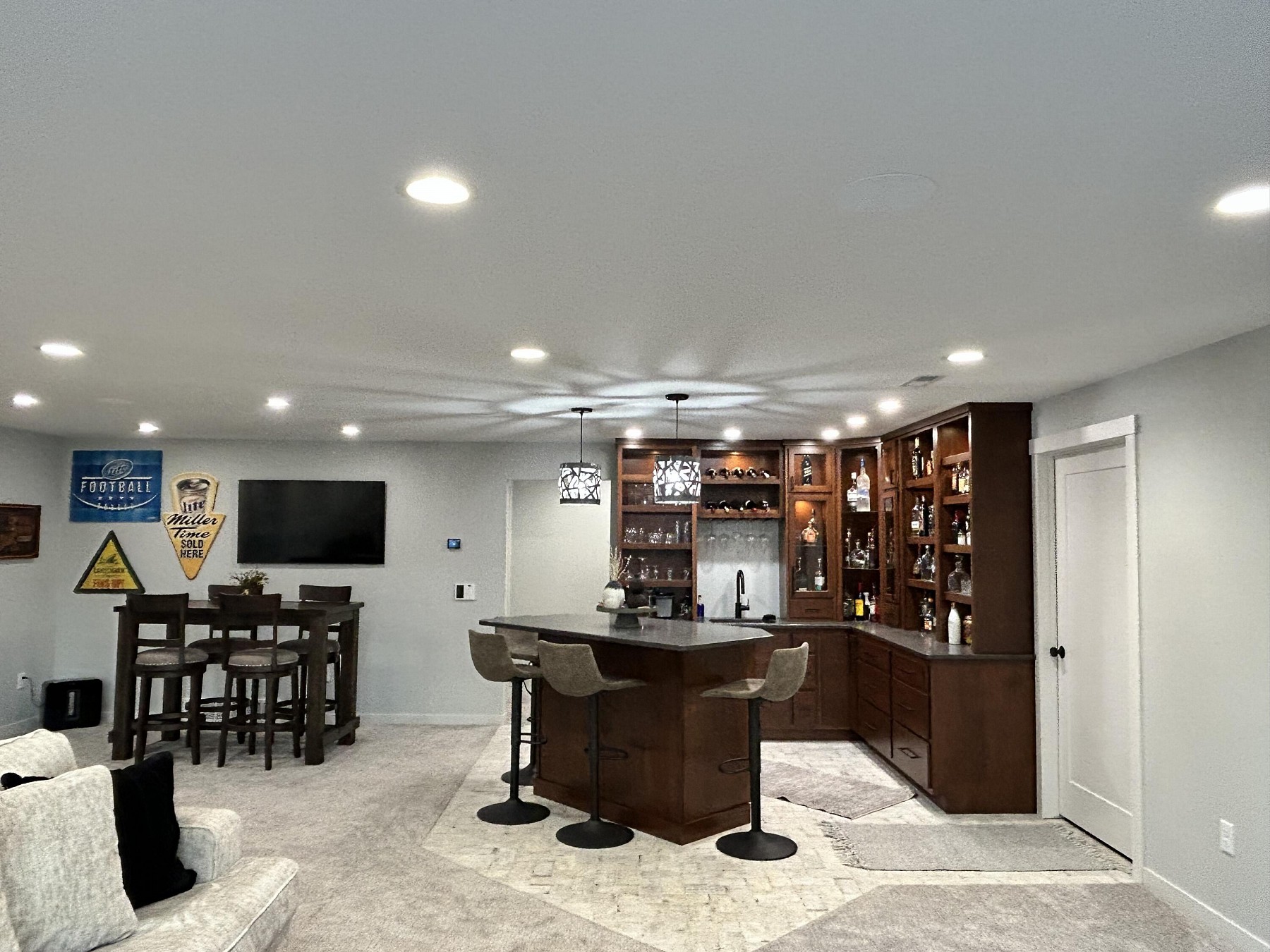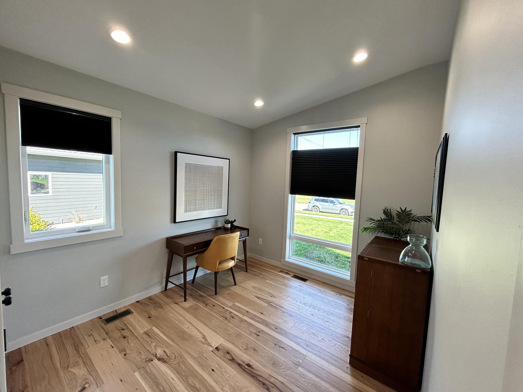 This spacious, single-family home features modern amenities and architectural character in a highly sought after location. You will love the abundance of natural light and views provided by the generous windows throughout the home. Entertaining guests and family will be a breeze with the open concept floor plan that features an expansive kitchen and dining space with direct access to the covered deck. The double sided fireplace will also offer warmth when spending late nights on the covered deck while enjoying the backyard views. You will also appreciate the sleek and modern custom bar that provides additional space for entertaining. For added convenience and accessibility, the laundry room, office, and master bedroom are located on the main level of this perfectly designed home