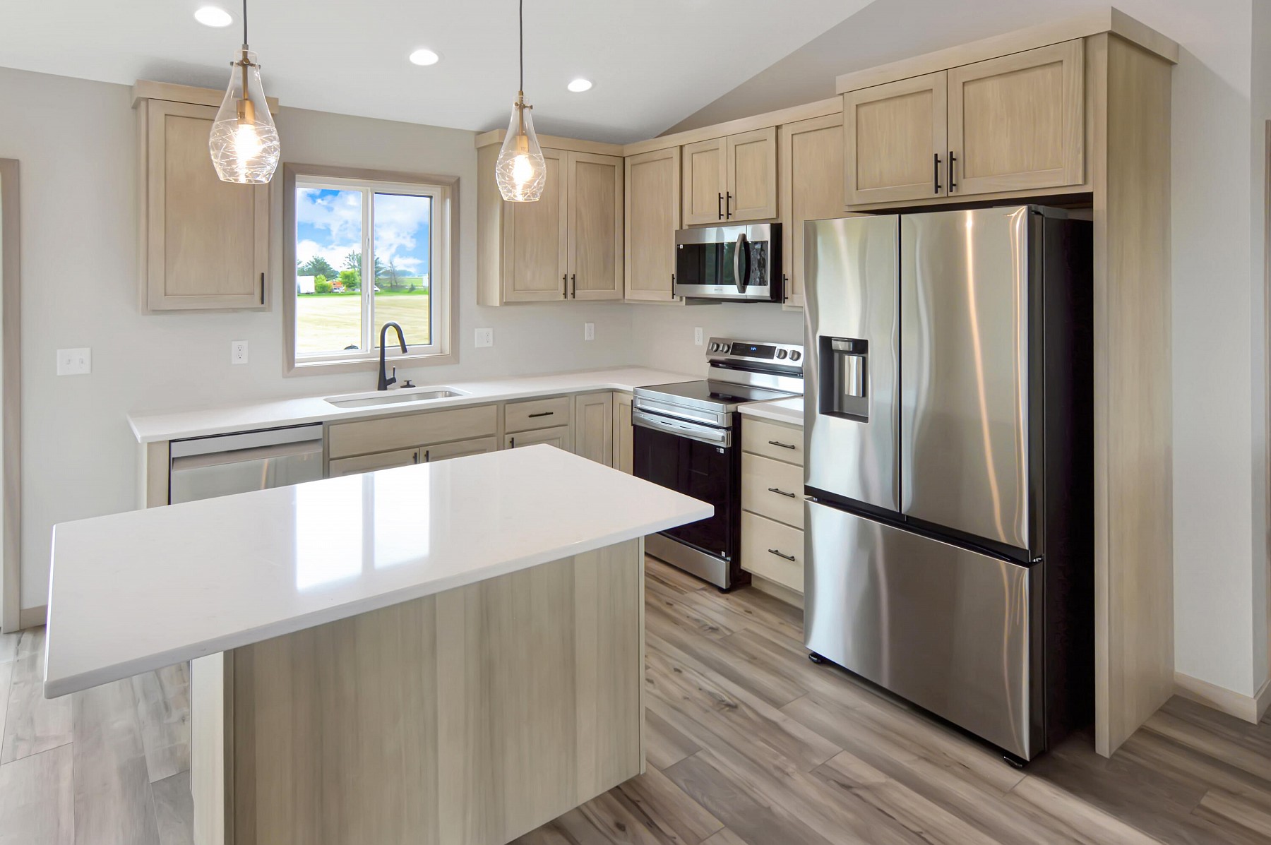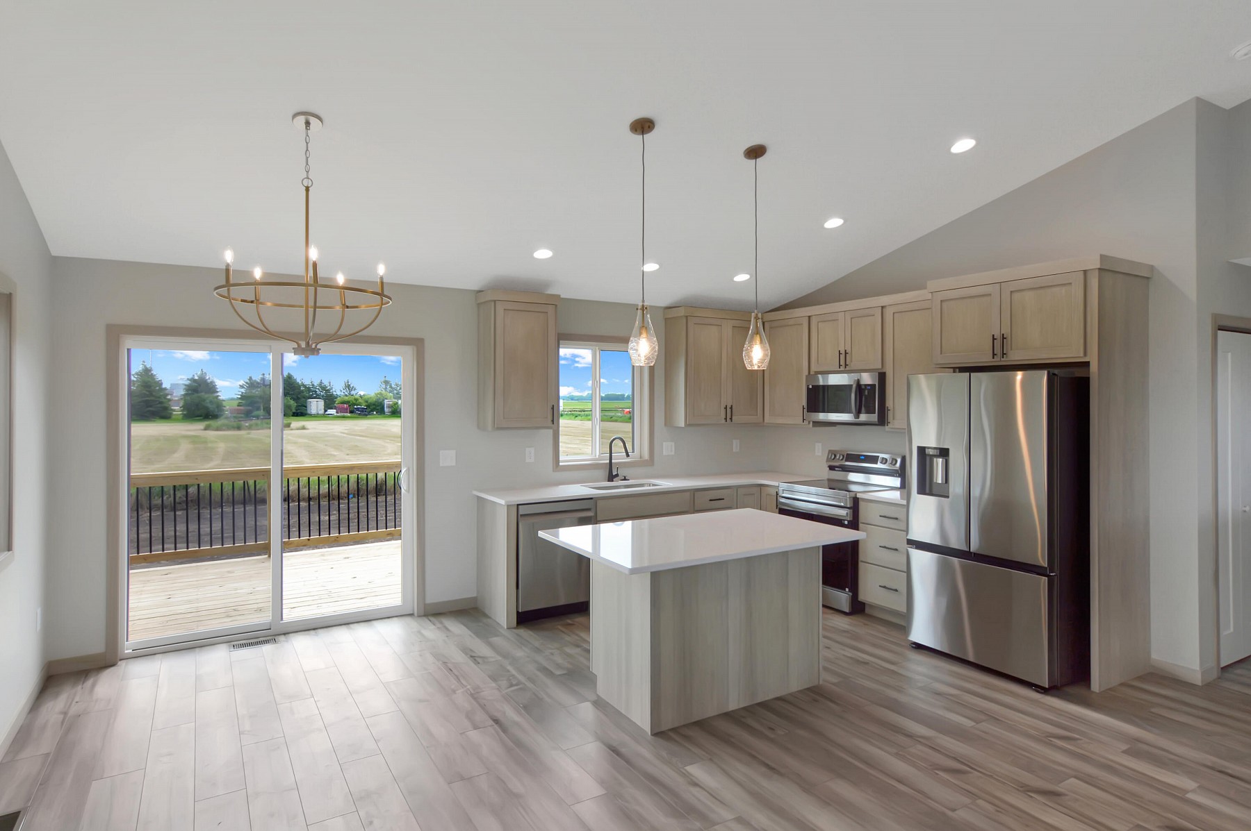 Welcome to your future home in the coveted Spilde Addition! This brand-new split foyer residence offers 2 Beds, 2 Baths and option to finish the lower level with 2 more beds and bathroom. The 3-Stall Garage has 8-foot heigh doors to fit bigger vehicles and a floor drain. The master suite features a private 3/4 bath and a generous walk-in closet. Kitchen has quartz countertops with an undermount sink. ALL appliances are included, including WASHER & DRYER plus lawn, seeding, rock, & edging! Basement is framed and insulated with a shower tub INCLUDED! Don't wait--call today to learn more!