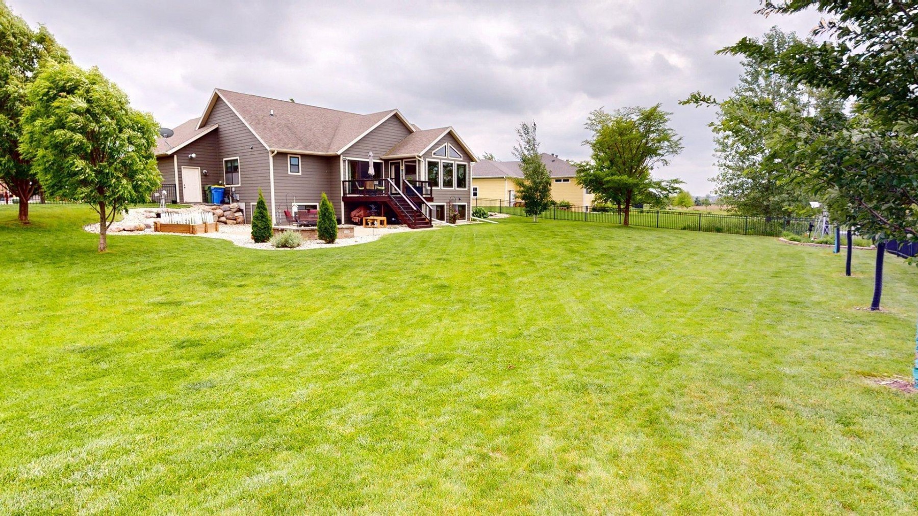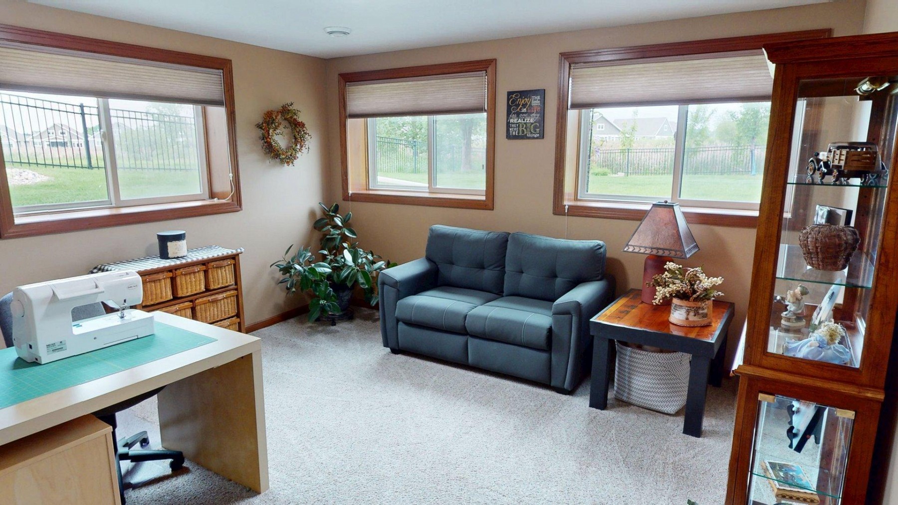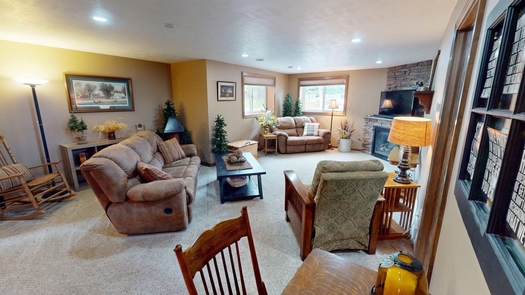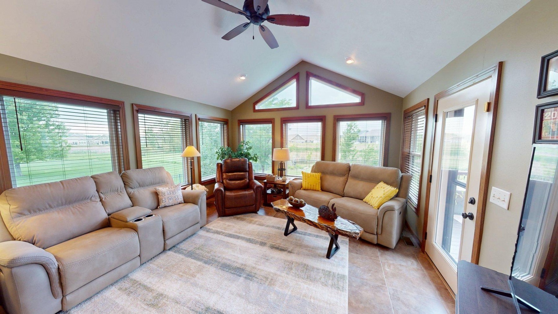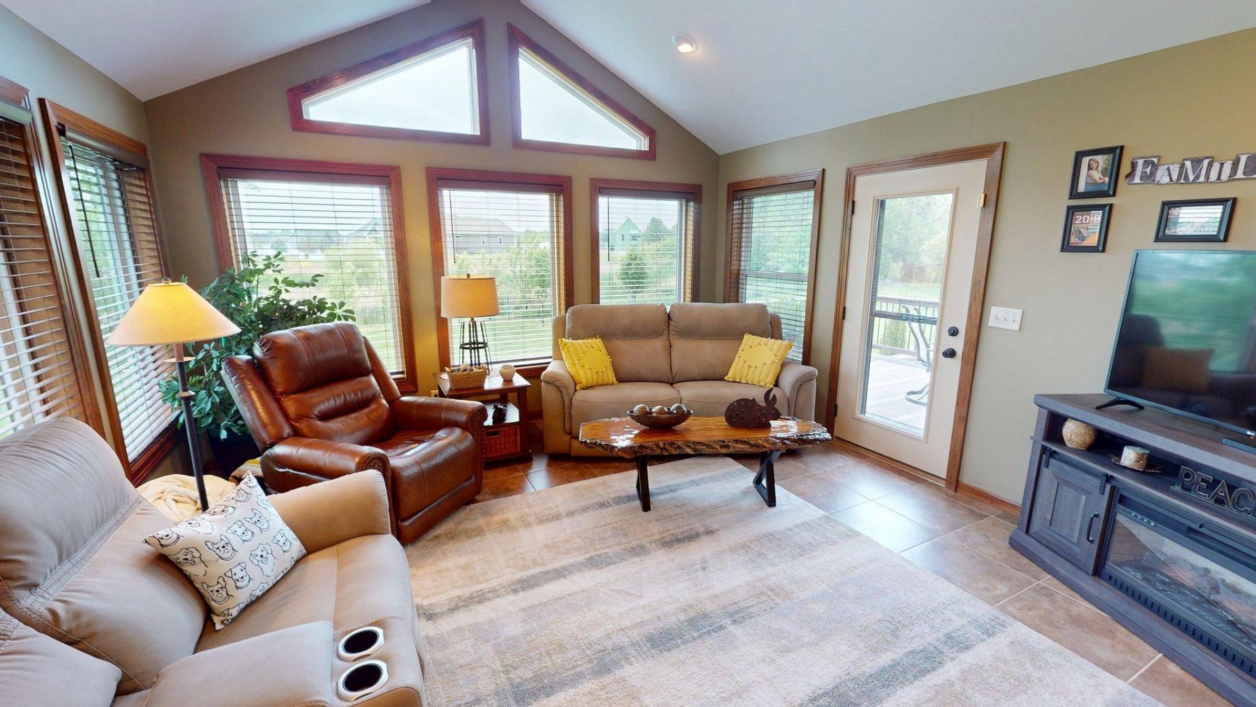 Step inside this stunning 4-bedroom, plus office, 3-bath home designed for comfort & style. The large 4-season sunroom adds charm & year-round enjoyment, while the main floor laundry keeps life convenient. The kitchen is a chef's dream with quartz countertops, ceramic tile backsplash, roll-out drawers, & a double pantry. The primary suite features a tray ceiling, walk-in closet, & a spa-like bathroom with heated tile floors & a tiled walk-in shower. The finished lower level has a large family room, wet bar, gas fireplace, two additional bedrooms, a bath, & a bonus room, perfect for office space. Outside, entertain on the large stone patio & deck, surrounded by a wrought-iron fenced backyard. Plus, a 3-car heated garage with epoxy flooring & extra storage completes this incredible home.