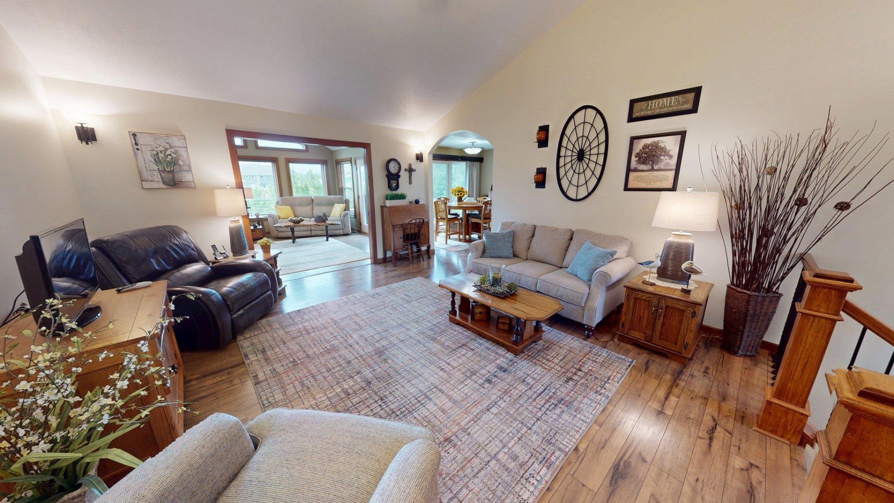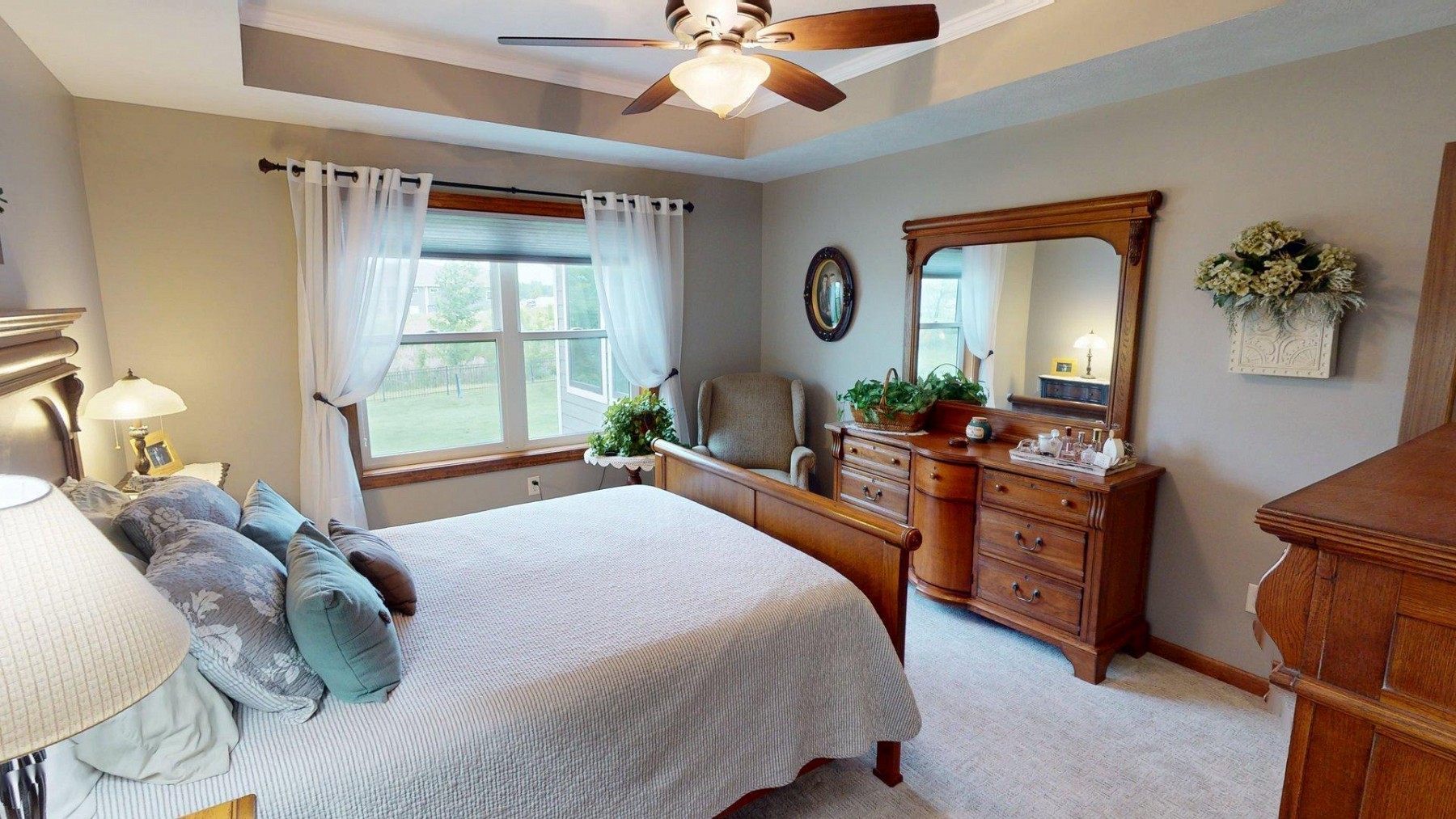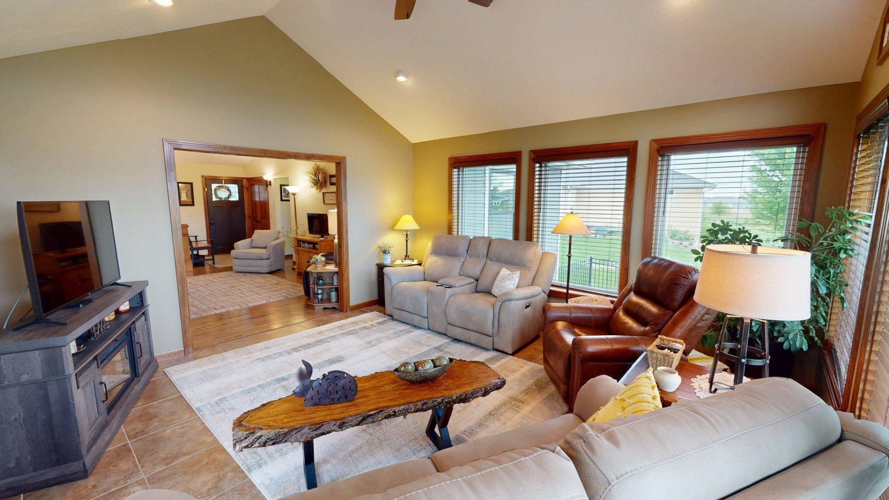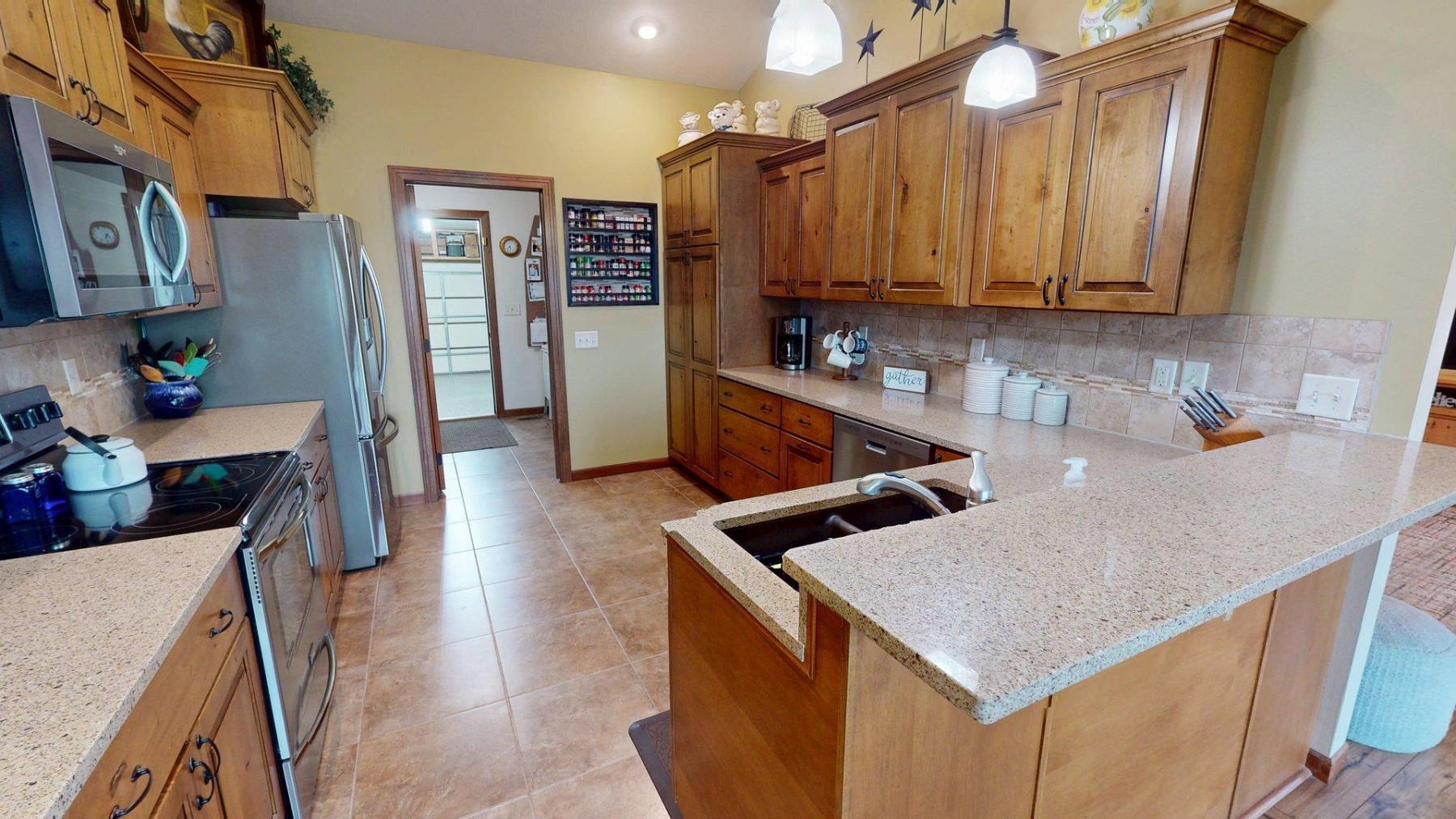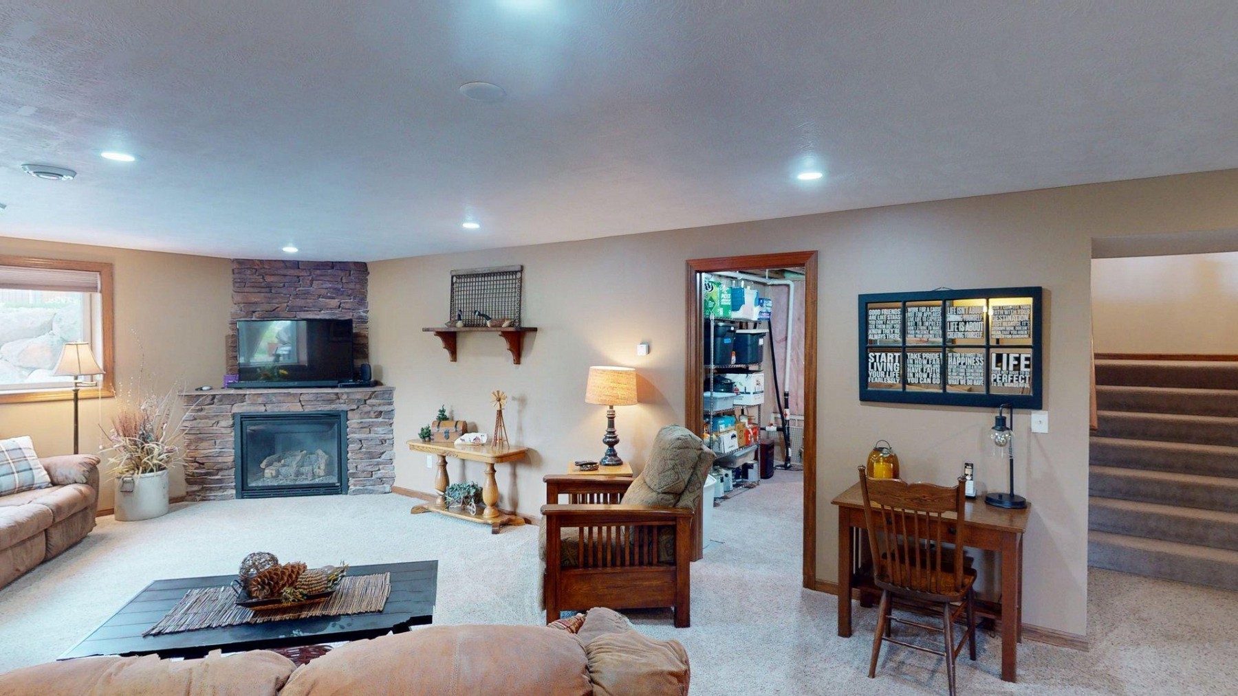 Step inside this stunning 4-bedroom, plus office, 3-bath home designed for comfort & style. The large 4-season sunroom adds charm & year-round enjoyment, while the main floor laundry keeps life convenient. The kitchen is a chef's dream with quartz countertops, ceramic tile backsplash, roll-out drawers, & a double pantry. The primary suite features a tray ceiling, walk-in closet, & a spa-like bathroom with heated tile floors & a tiled walk-in shower. The finished lower level has a large family room, wet bar, gas fireplace, two additional bedrooms, a bath, & a bonus room, perfect for office space. Outside, entertain on the large stone patio & deck, surrounded by a wrought-iron fenced backyard. Plus, a 3-car heated garage with epoxy flooring & extra storage completes this incredible home.