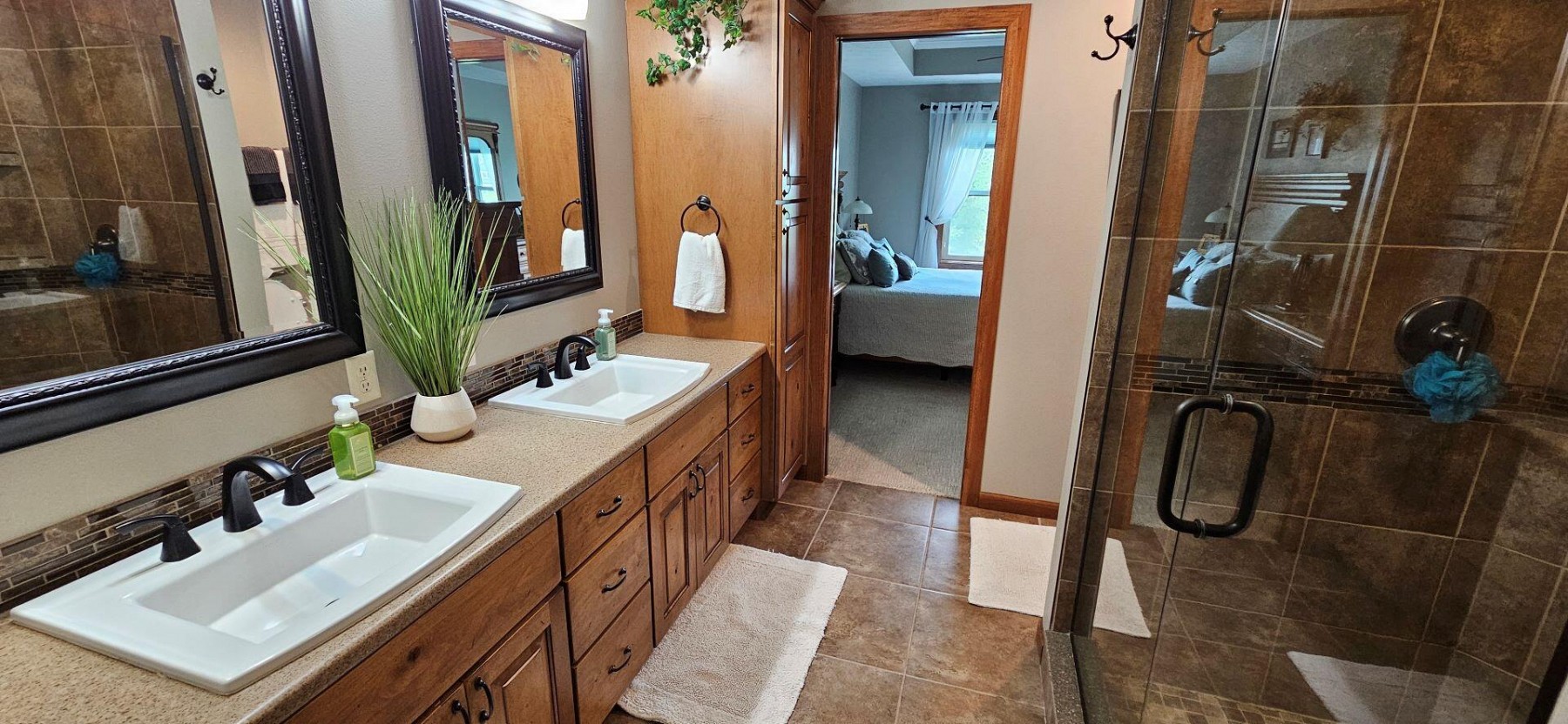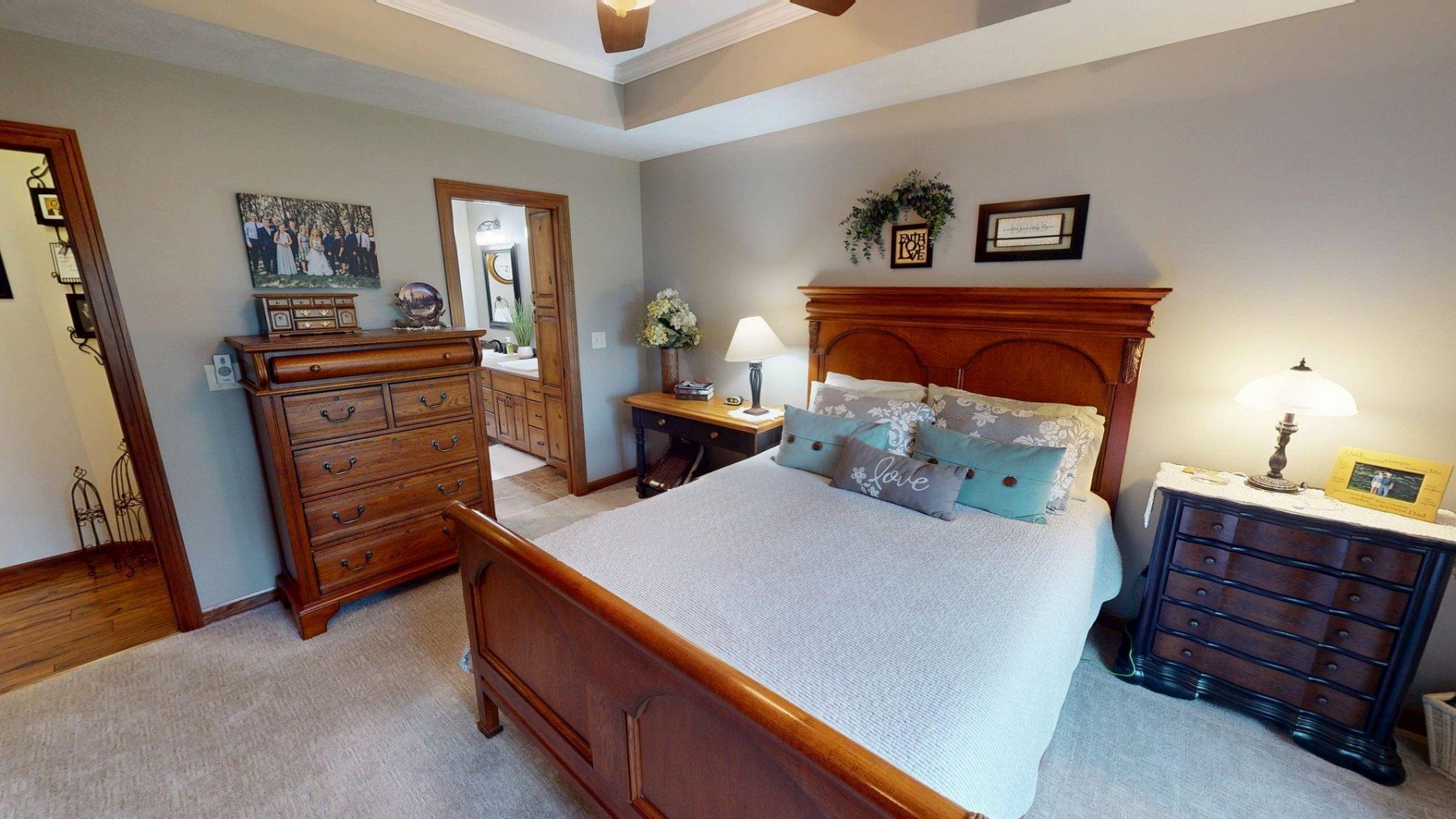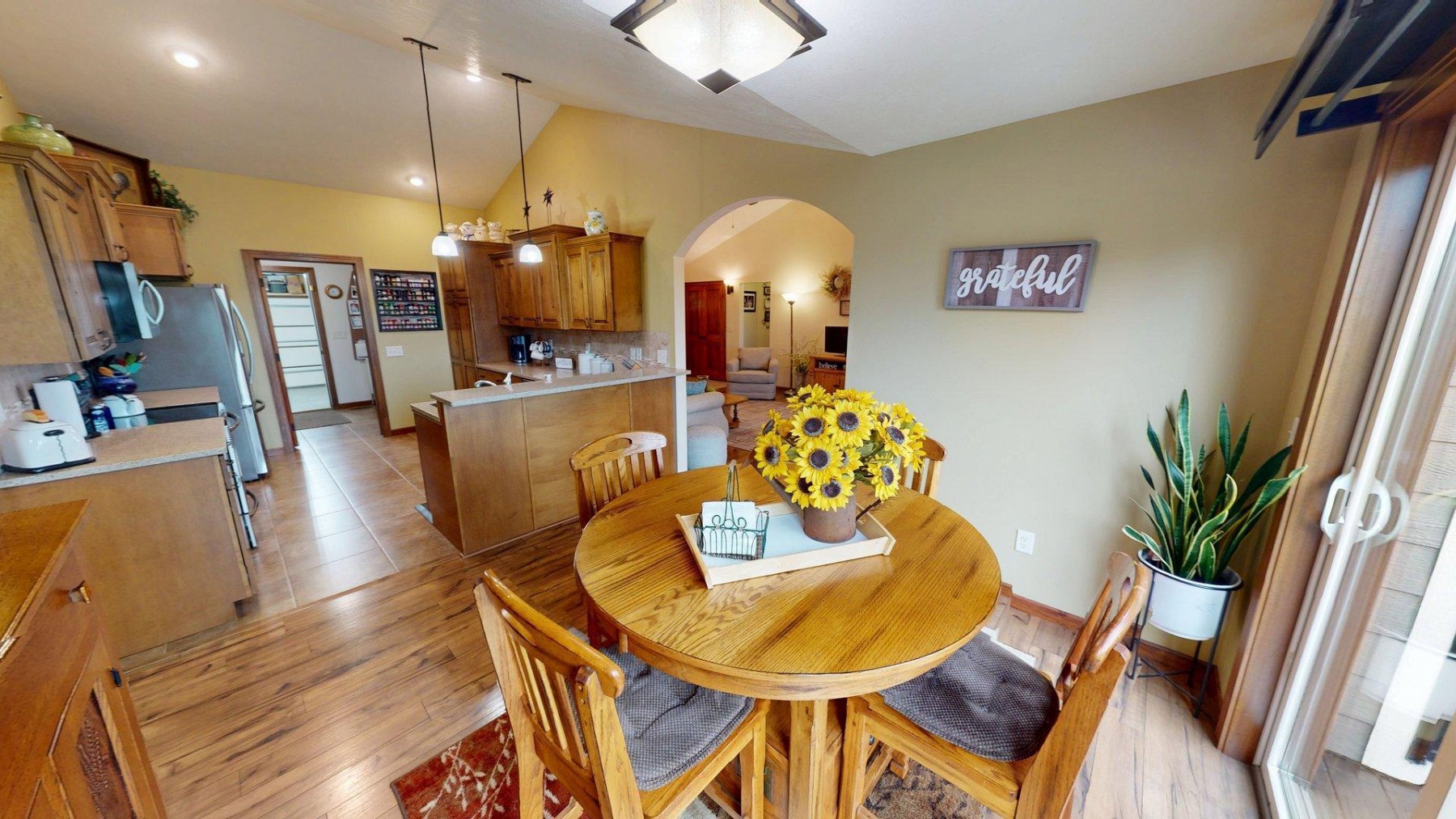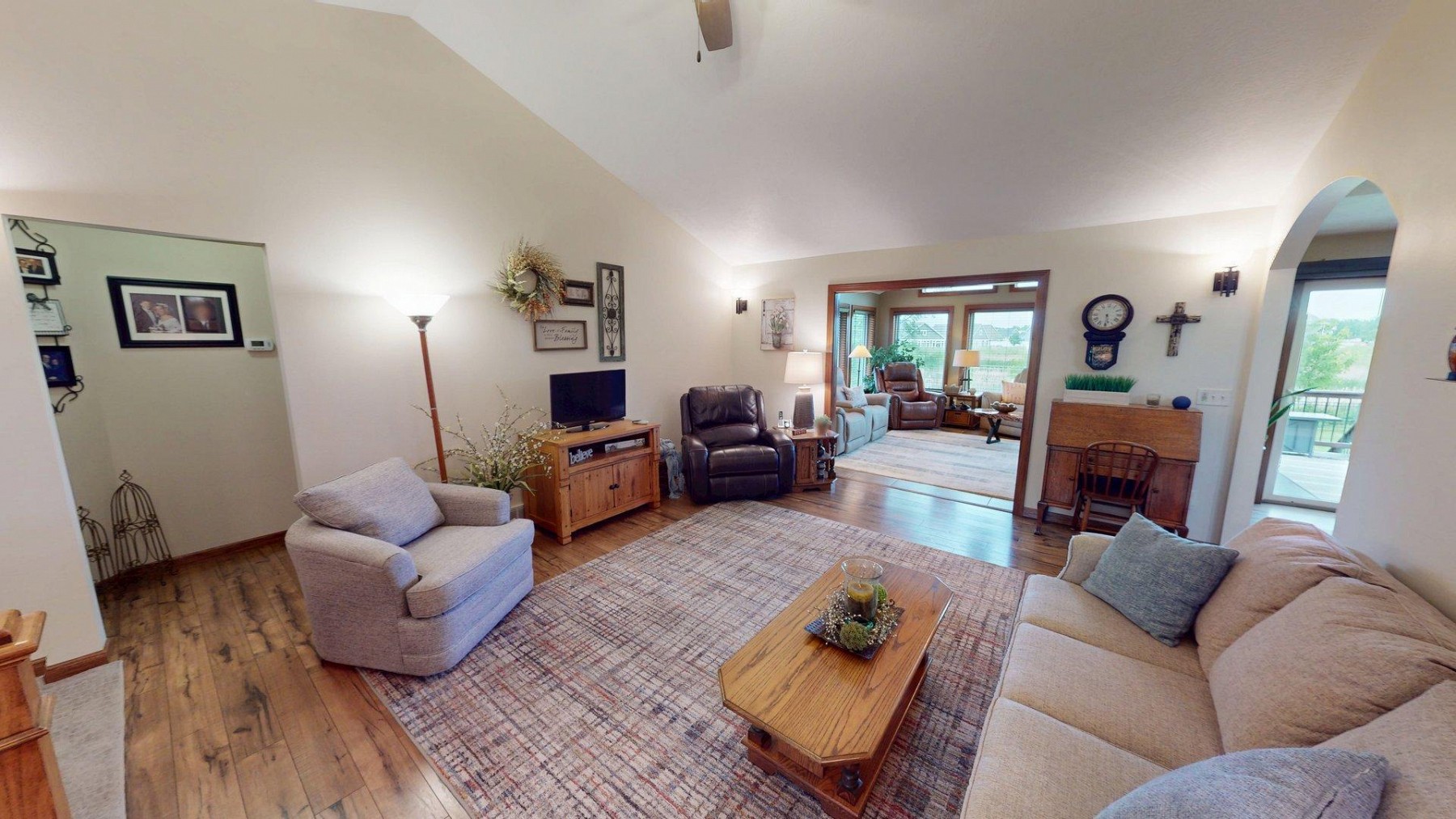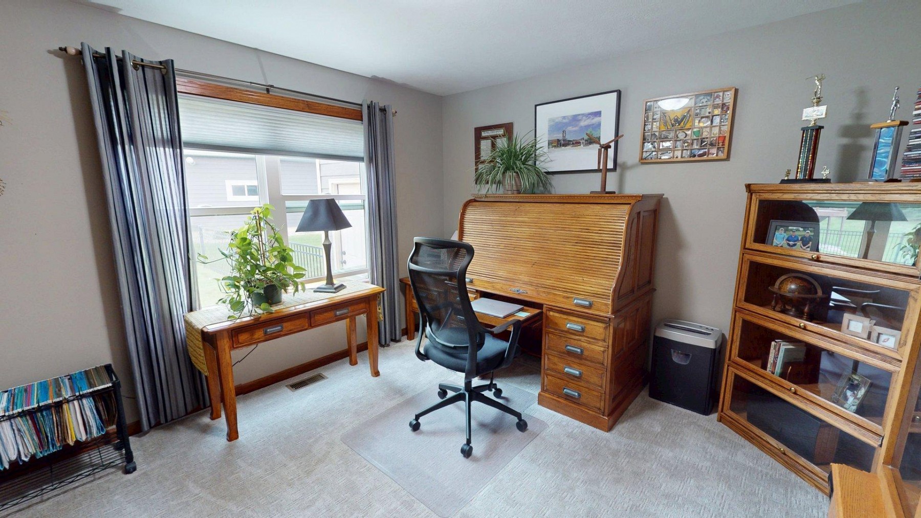 Step inside this stunning 4-bedroom, plus office, 3-bath home designed for comfort & style. The large 4-season sunroom adds charm & year-round enjoyment, while the main floor laundry keeps life convenient. The kitchen is a chef's dream with quartz countertops, ceramic tile backsplash, roll-out drawers, & a double pantry. The primary suite features a tray ceiling, walk-in closet, & a spa-like bathroom with heated tile floors & a tiled walk-in shower. The finished lower level has a large family room, wet bar, gas fireplace, two additional bedrooms, a bath, & a bonus room, perfect for office space. Outside, entertain on the large stone patio & deck, surrounded by a wrought-iron fenced backyard. Plus, a 3-car heated garage with epoxy flooring & extra storage completes this incredible home.