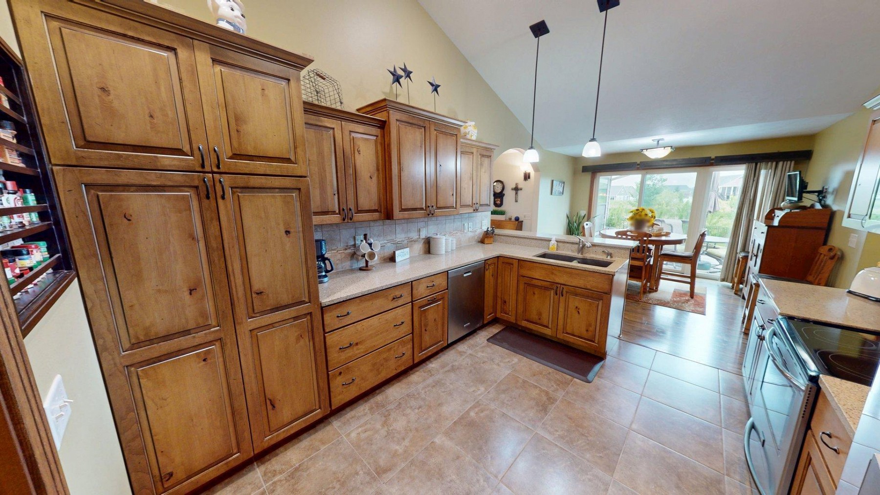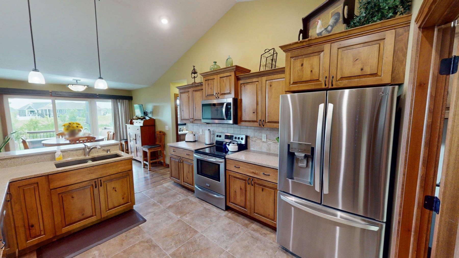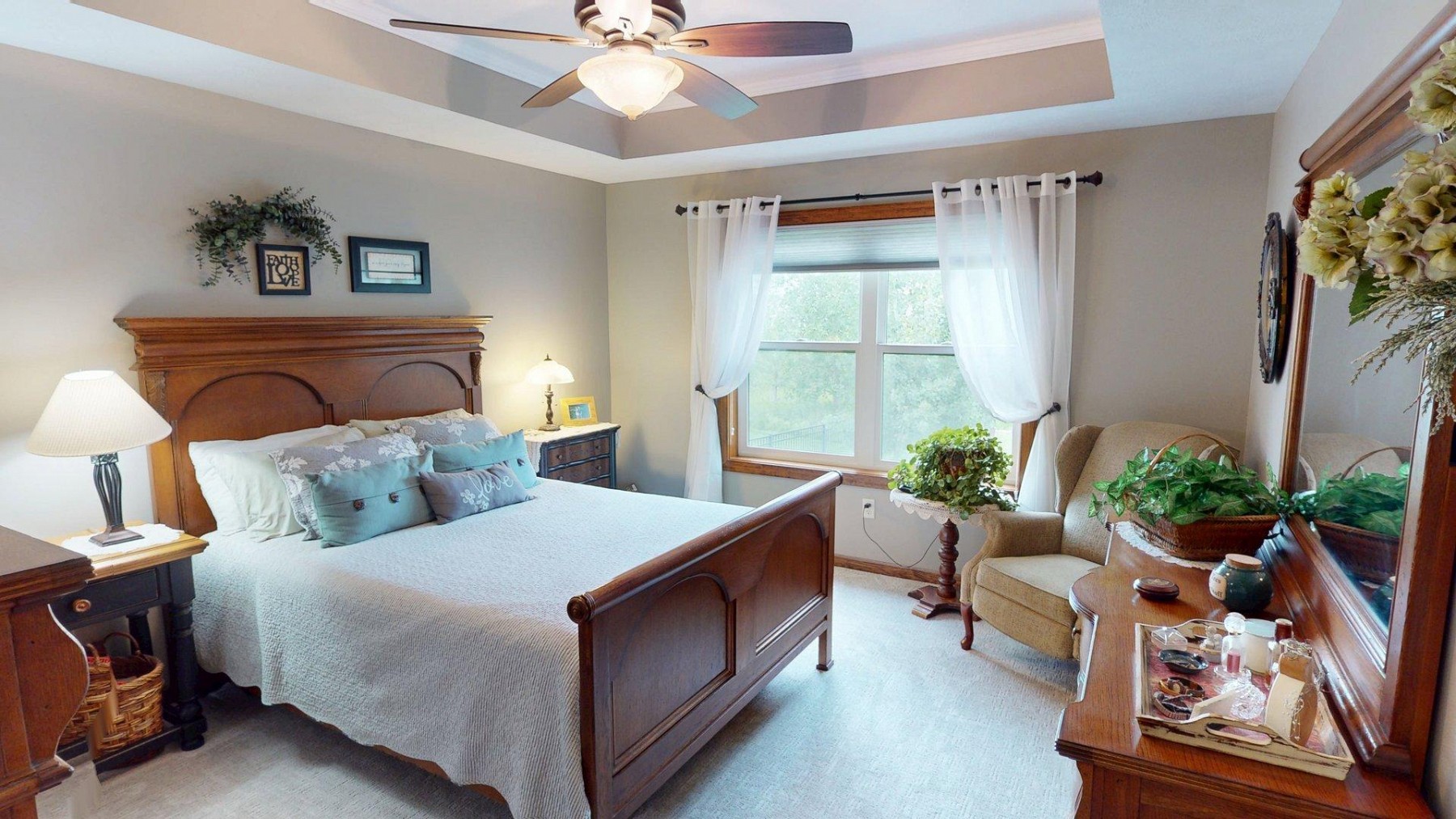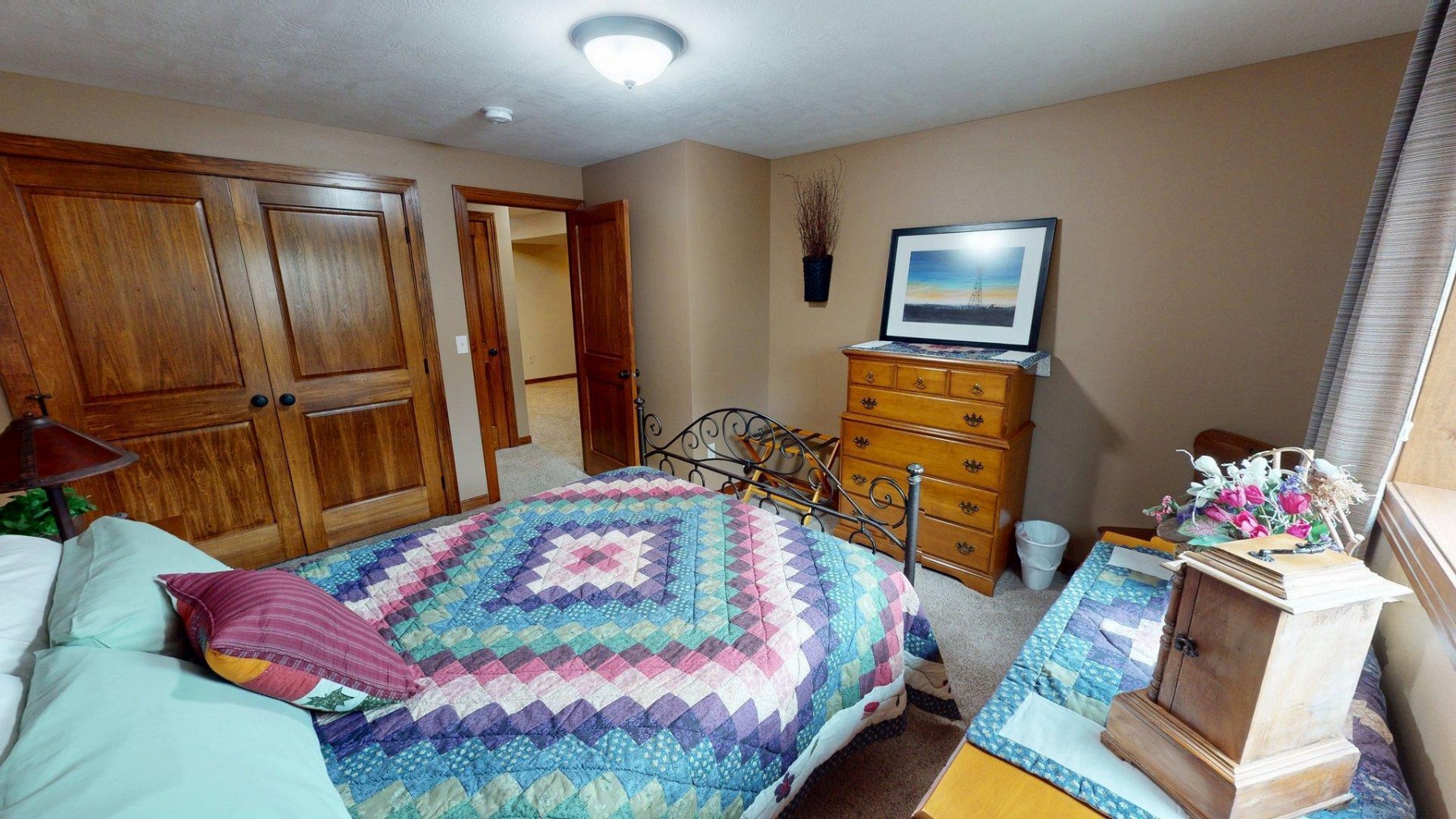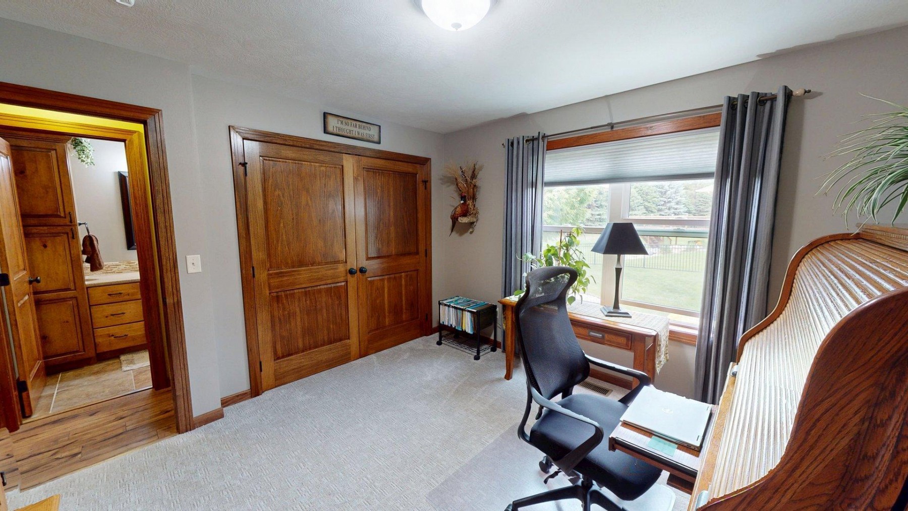 Step inside this stunning 4-bedroom, plus office, 3-bath home designed for comfort & style. The large 4-season sunroom adds charm & year-round enjoyment, while the main floor laundry keeps life convenient. The kitchen is a chef's dream with quartz countertops, ceramic tile backsplash, roll-out drawers, & a double pantry. The primary suite features a tray ceiling, walk-in closet, & a spa-like bathroom with heated tile floors & a tiled walk-in shower. The finished lower level has a large family room, wet bar, gas fireplace, two additional bedrooms, a bath, & a bonus room, perfect for office space. Outside, entertain on the large stone patio & deck, surrounded by a wrought-iron fenced backyard. Plus, a 3-car heated garage with epoxy flooring & extra storage completes this incredible home.