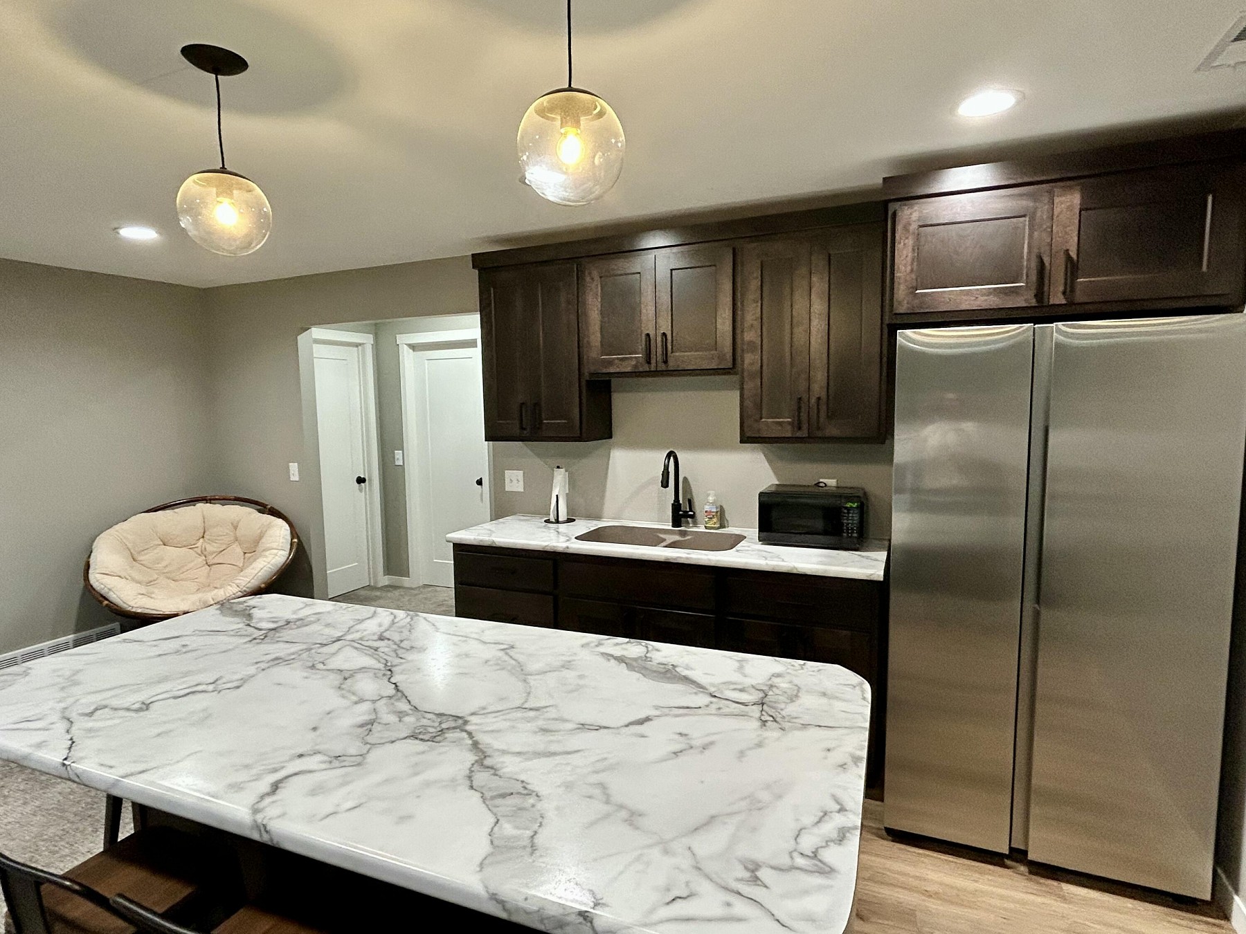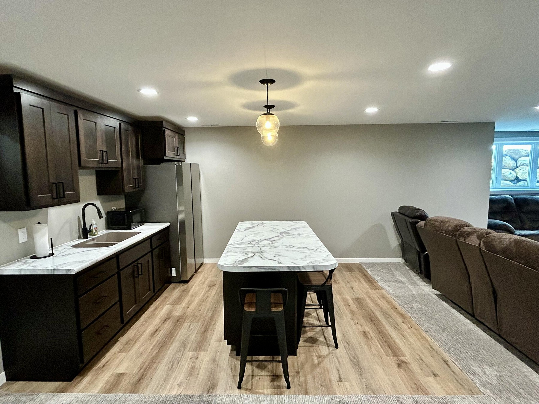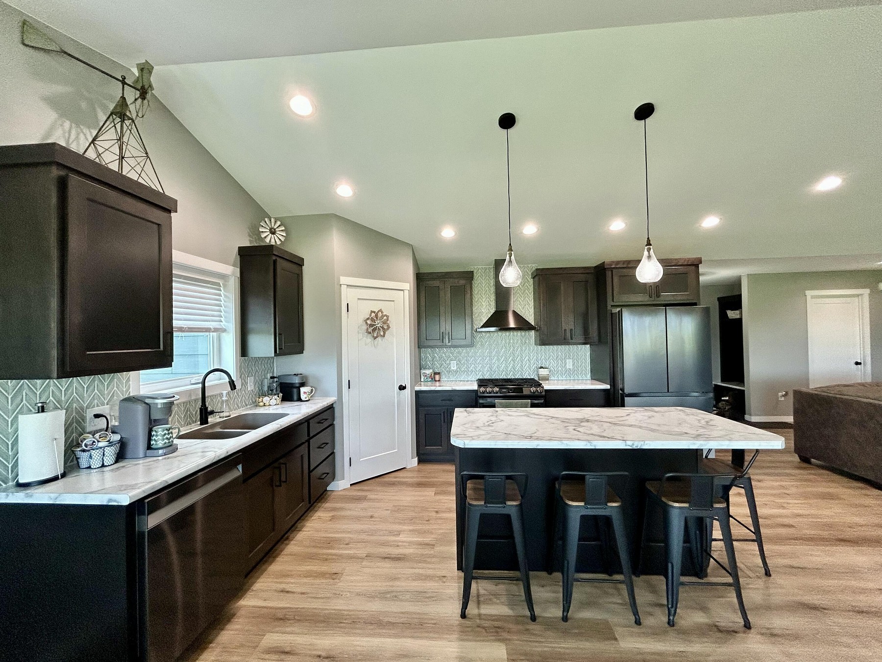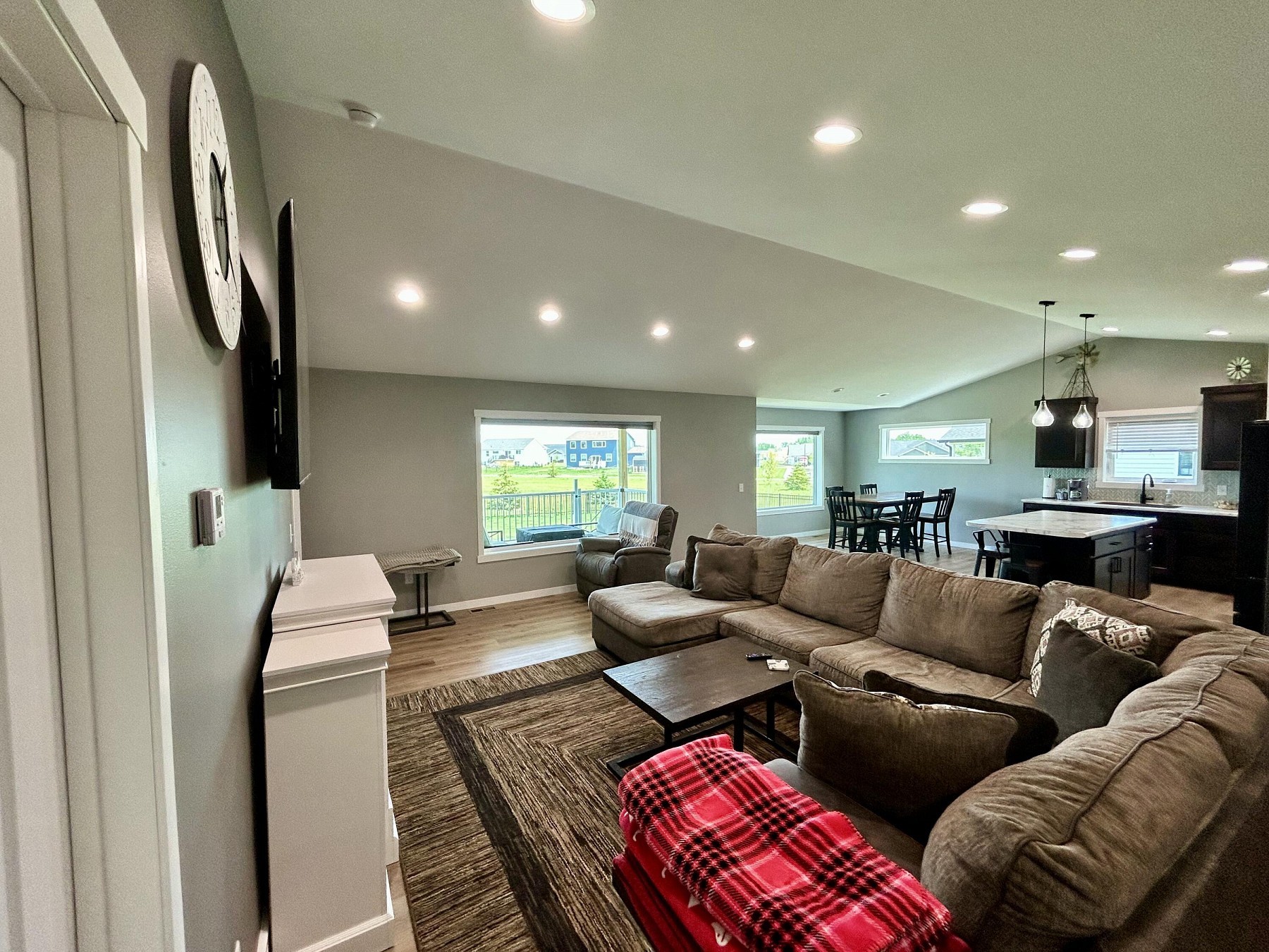 This almost new beautifully maintained 4-bedroom, 3-bath ranch offers thoughtful design and exceptional space inside and out. The main level features a luxurious master suite with a private bath and walk-in closet, plus the convenience of main floor laundry.Large windows flood the main living areas with natural light, creating a warm, inviting atmosphere in the open-concept kitchen, dining, and living room--perfect for everyday living or entertaining. All four bedrooms feature walk-in closets, providing ample storage. The lower level expands your entertaining possibilities with a spacious layout that includes a large island, sink, fridge, and plenty of cabinet space--ideal for gatherings or creating a guest retreat.Step outside to a fully fenced backyard, perfect for pets or kids.