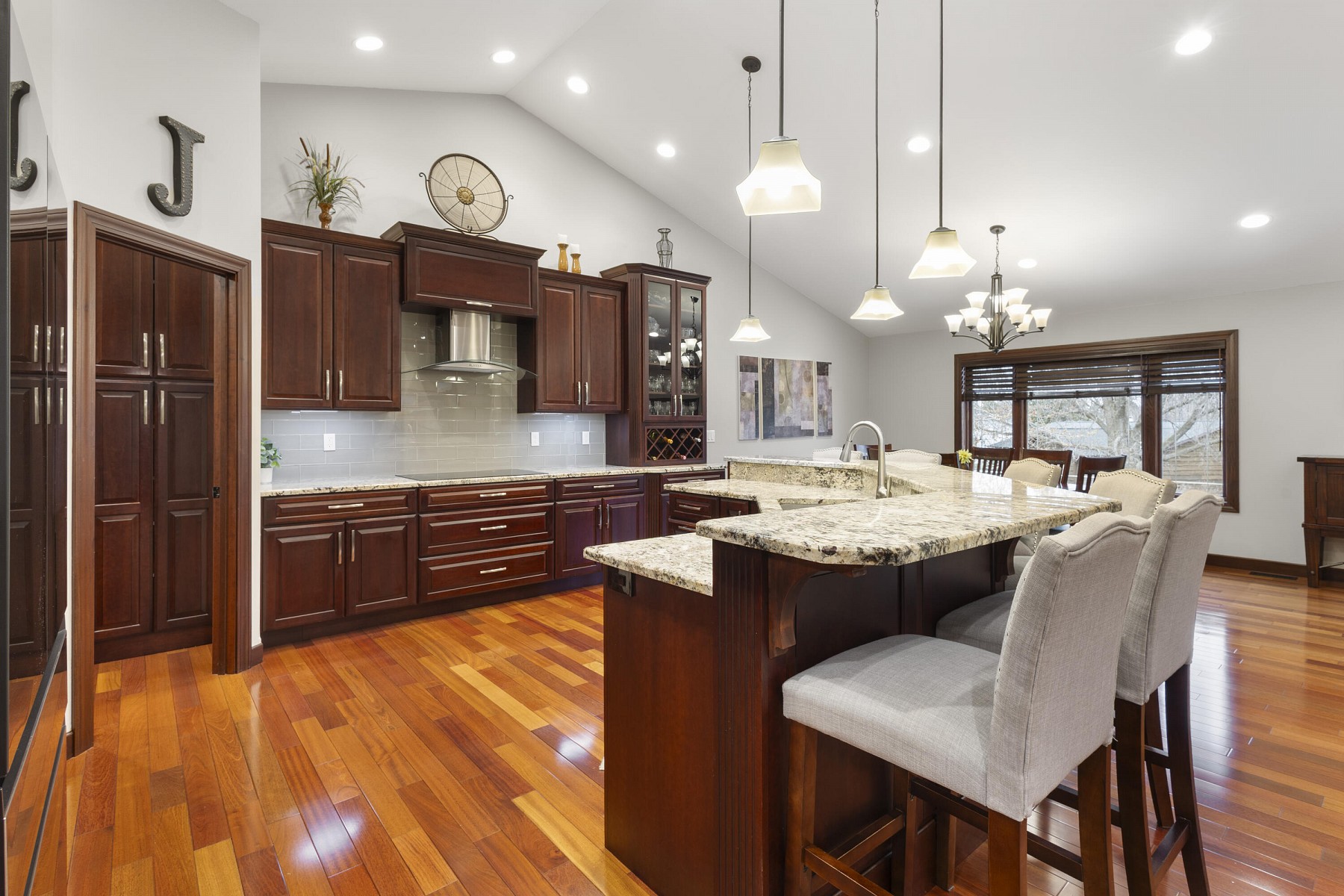 MOVE IN CONDITION DOESN'T EVEN DO IT JUSTICE!! You will not find a cleaner more well cared for home anywhere!! The main level open floor plan with vaulted ceiling will stop you in your tracks. With 2231 sq.ft. on the ML and over 4200 finished sq.ft., heated triple garage, walkout lot, make this the complete package. You'll love Brazilian Cherrywood floors, granite countertops, Cherry custom cabinets everywhere, basement in-floor heat and kitchen and laundry rooms on both levels. You have see this one!! Set up your showing today! Agents, please see private remarks.
