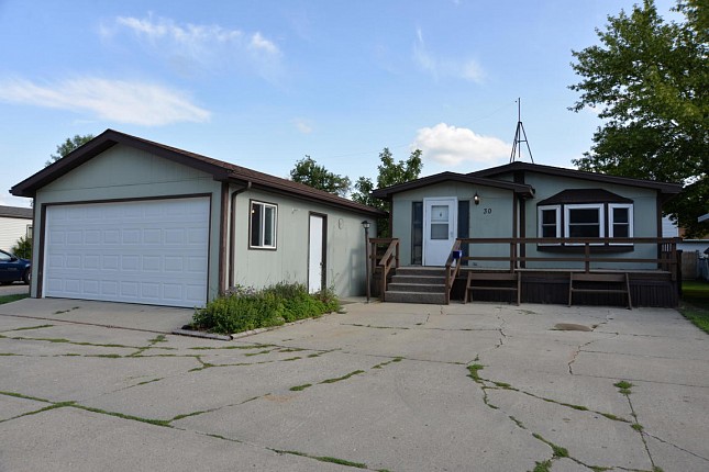 Everything you need and affordable! This home sits in a nice, affordable park in central Brookings. An open layout, pantry area and sliding door to deck make this a nice, comfortable home. Property offers a double garage and 2 sheds!