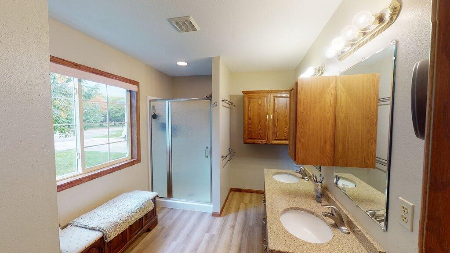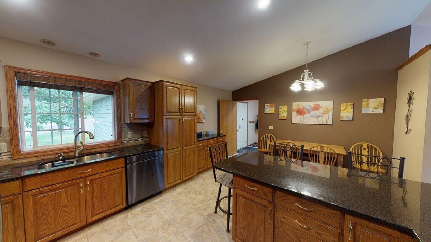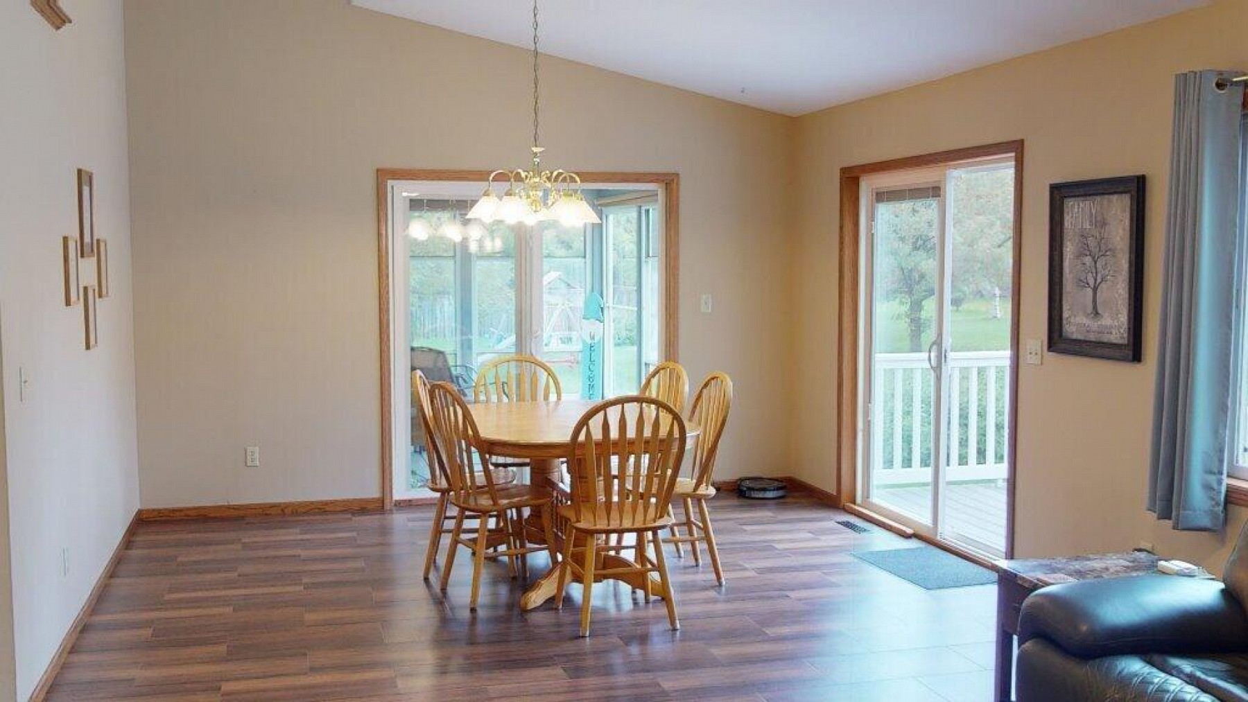 AWESOME SPACE! With over 1,800 sq. ft. on the main level, there's room for everyone in this beautifully maintained ranch style home that features 5 bedrooms, 3 bathrooms, main floor laundry, and a 3 season room. The composite back deck has vinyl railings and a Sunsetter awning. Kitchen has dura-ceramic flooring, tiled backsplash, breakfast bar, granite counter tops, double pantry, under-mount sink and an in-line water filter system. The garage has an electric heater, abundance of cabinets, has steps to the basement and the 4th car garage space has in-floor heat. The 8 x 12 storage shed has a concrete floor and electricity. Landscaping has cement curbing and many perennials along with a sprinkler system. Call today for a private showing!
