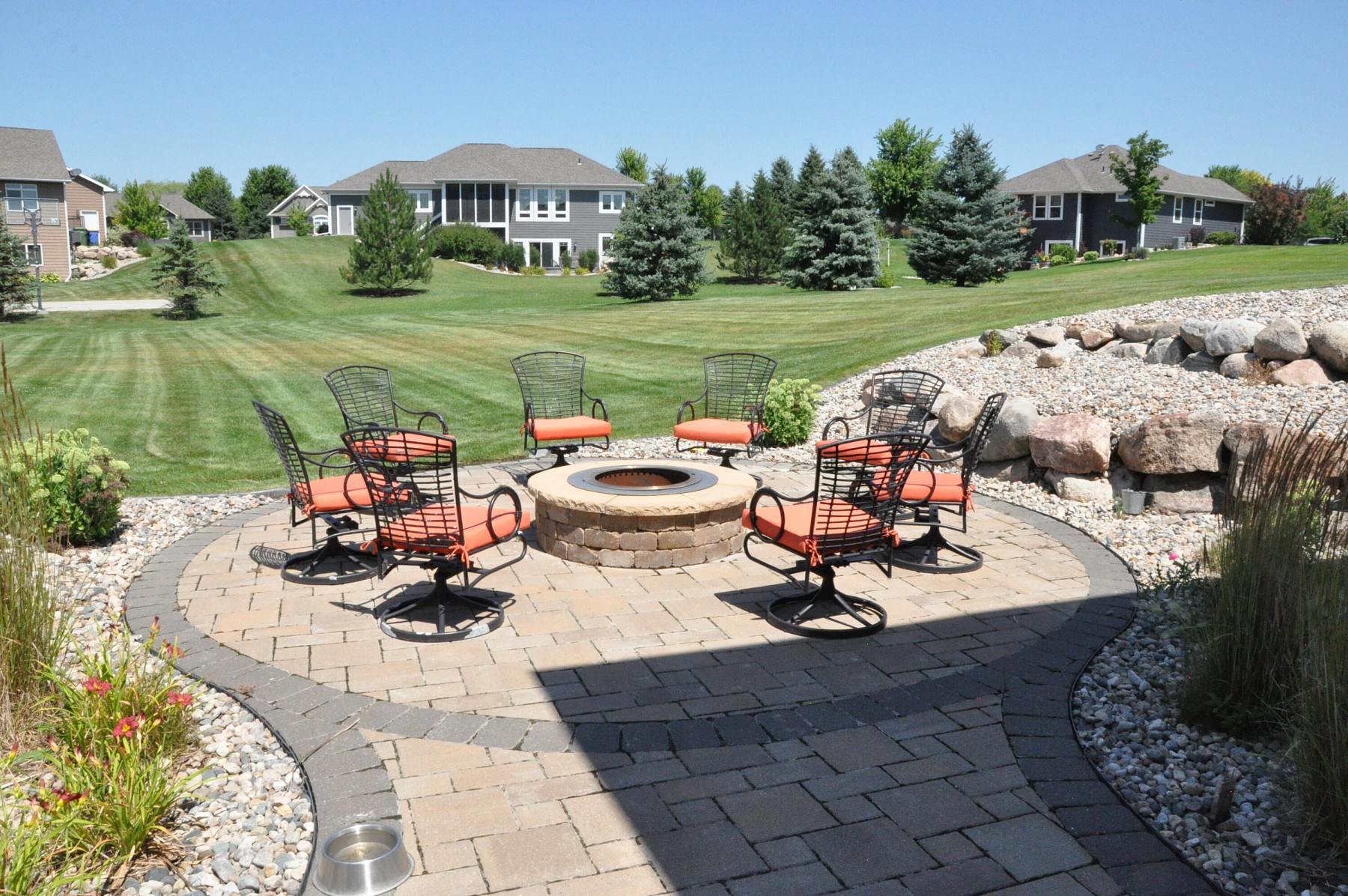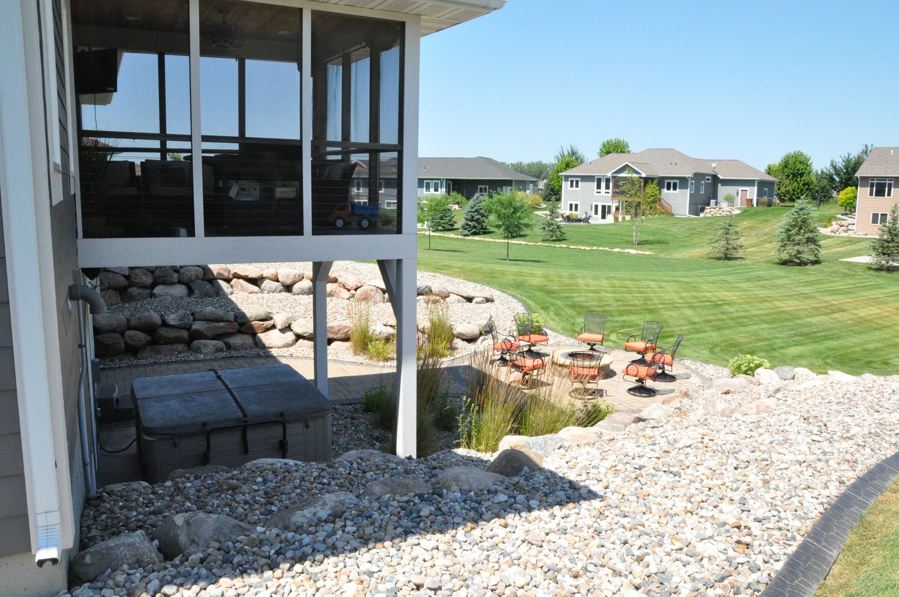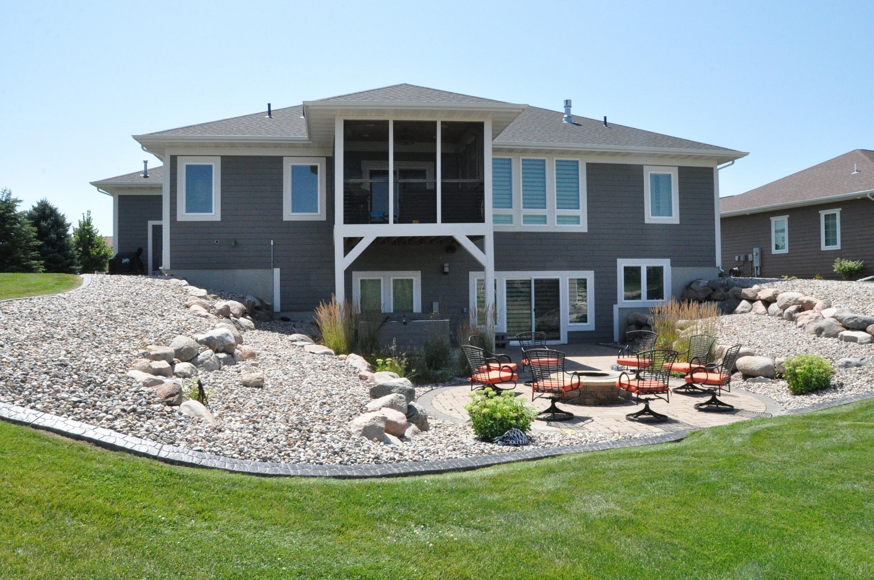 What a great opportunity to get this 5 bed, 3 bath home with so many great amenities, including a screened/covered deck, a walk-out basement to a paver patio with a fire pit, whole house surround sound, heated tile floors in all the bathrooms. The list just keeps going. Walk through the front door and enjoy the open floor plan with vaulted ceiling. The mudroom/garage entry features ML laundry plus built-in cabinets and lockers. The kitchen has a gorgeous island and walk-in pantry. The large master bedroom has a walk-in closet and a private bath with double sinks and tile walk-in shower The lower level has a large family room with a bar area + a dining area. Don't forget that all of this is situated on a huge cul-de-sac lot! Check this home out!! It may not last very long!!