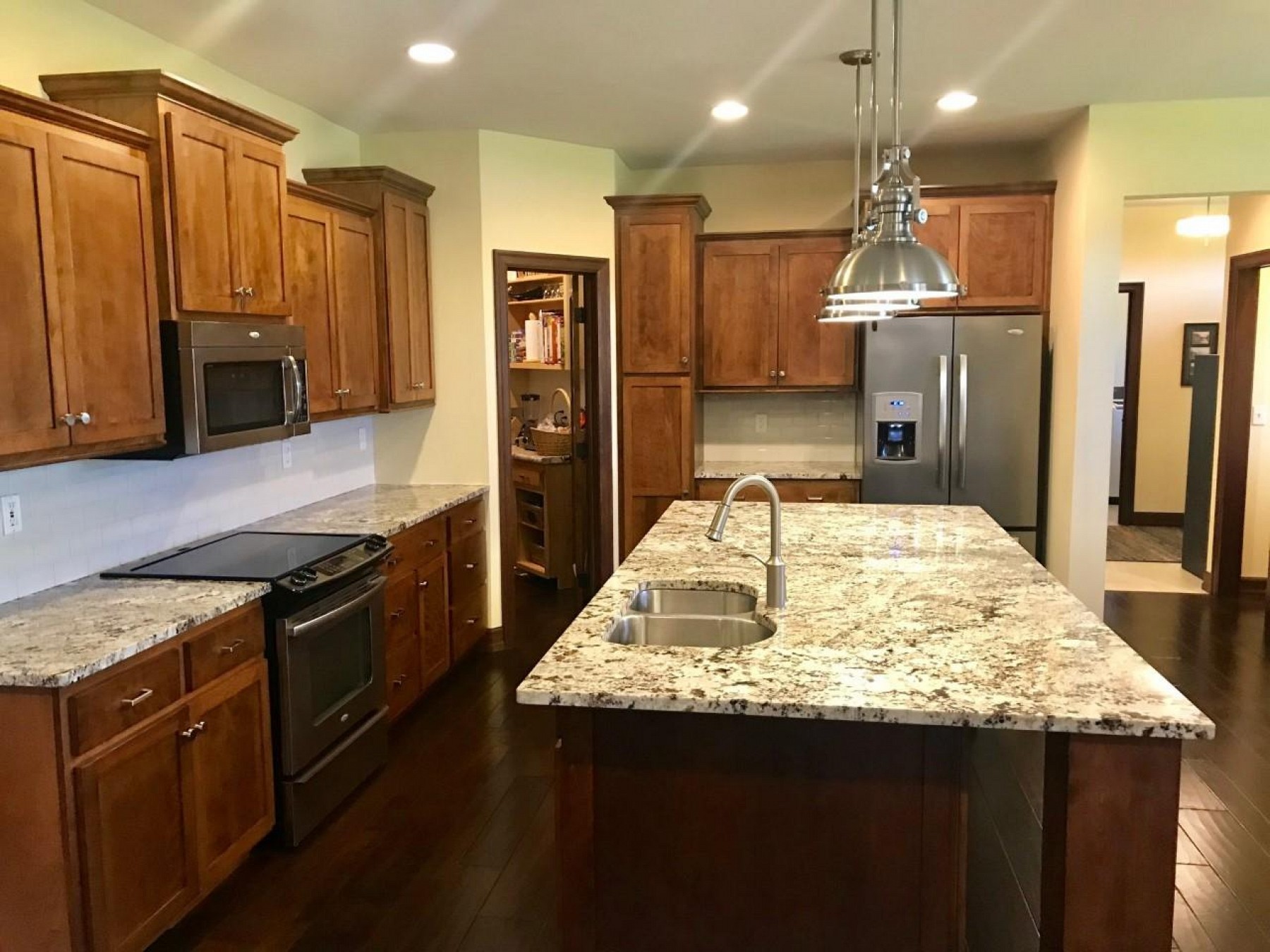 Stunning! This spectacular 5 bed,3 bath custom built home boasts top of the line quality throughout including granite countertops, granite island, custom soft close cabinets in the kitchen, engineered hardwood floors and 2 fireplaces! It also features a master bath with a jetted tub, tile shower, and a large walk in closet. The lower level includes an immense Family room with a large bar, media room, fireplace, luxury vinyl plank flooring, along with 2 bedrooms and a full bath. This beautiful home also provides a heated 4 car garage, Pergola covered deck with a screened in porch, covered patio, and sprinkler system. Don't Wait! Schedule your showing today!